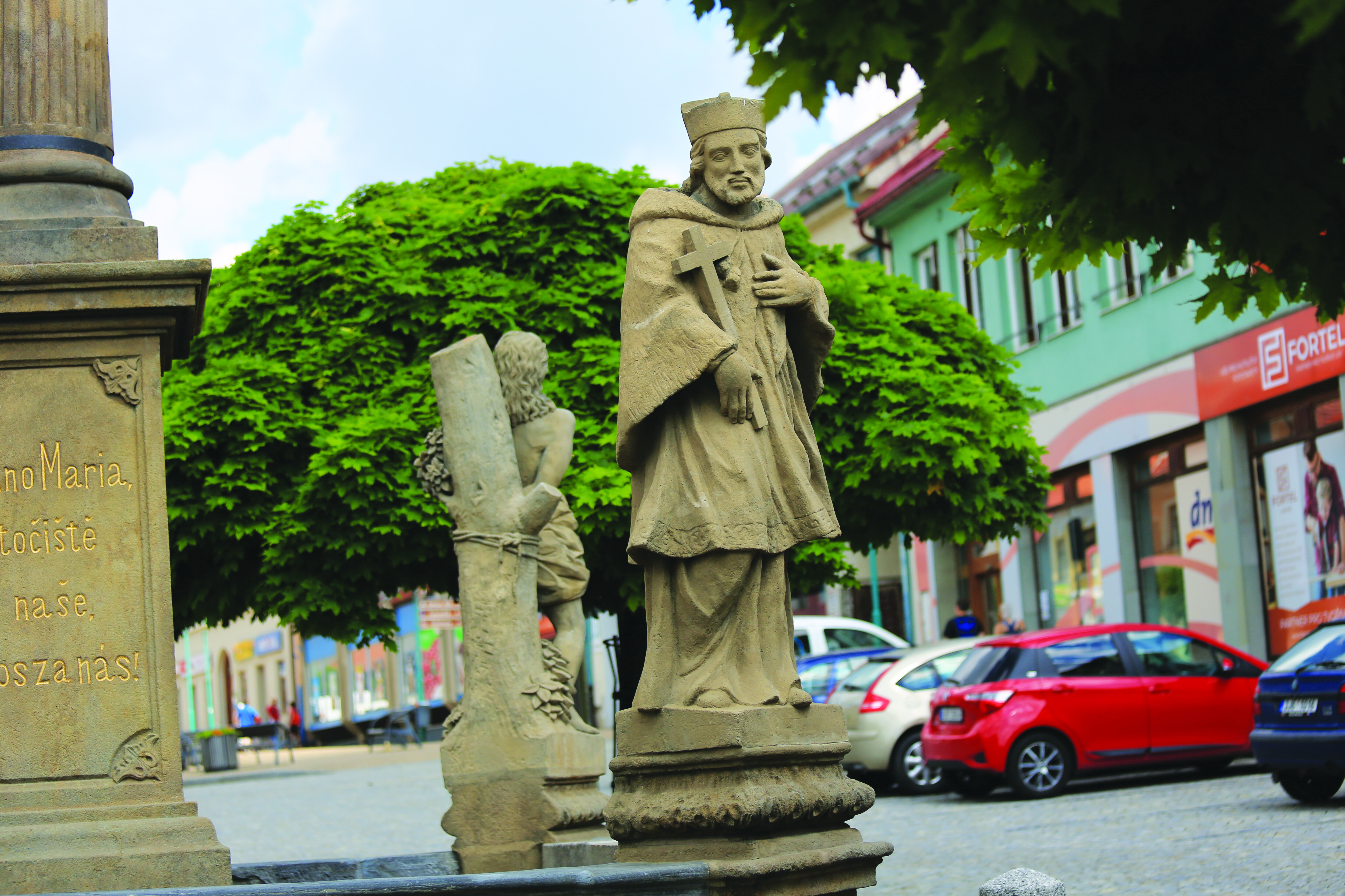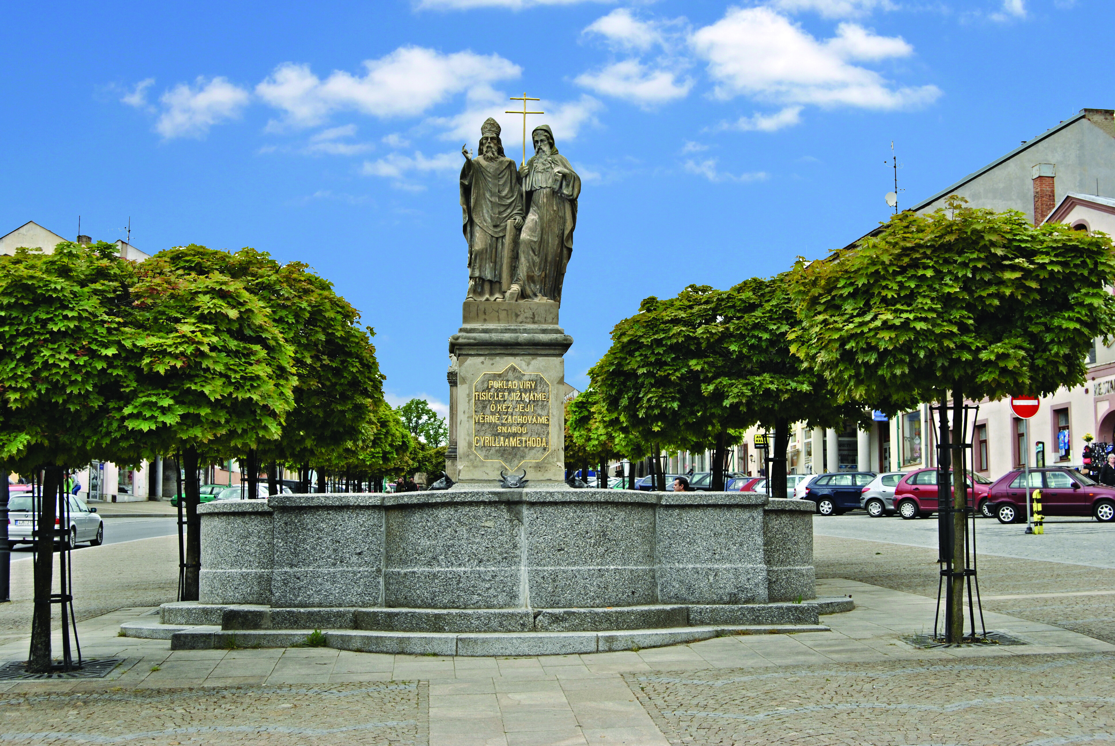 Náměstí je zdobeno památkově chráněnými domy a sochařskými díly, včetně kašny Cyrilem a Metodějem a sloupu se sochou Panny Marie. Centrum Eden, s patrovou klasicistní budovou a rozsáhlým areálem, slouží jako ukázka tradičního hospodářství a nabízí aktivity pro celou rodinu, včetně dřevěné vesnice a řemeslnických dílen.