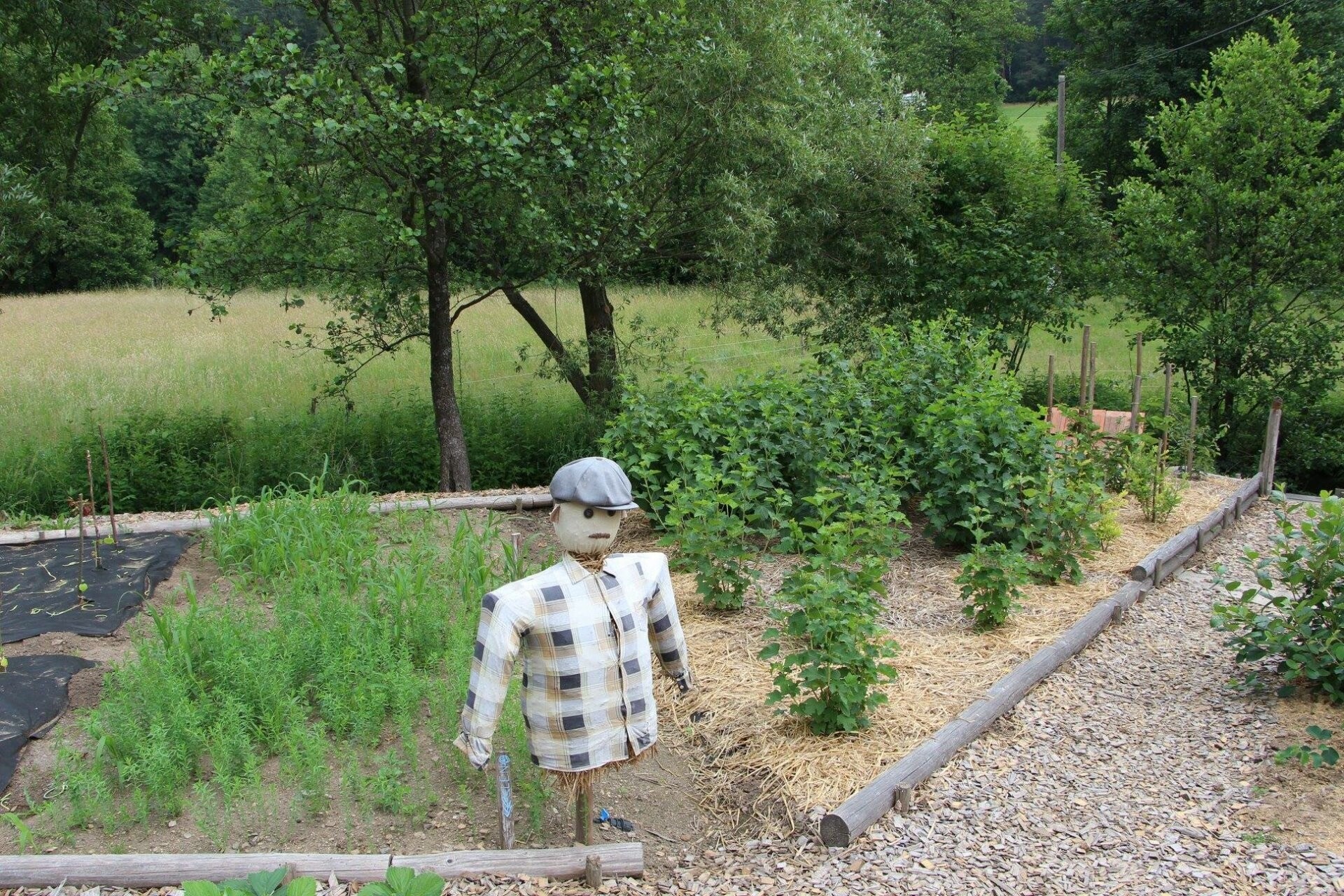 V předzahrádce u štítu chalupy jsou bylinky a trvalky, keře, ale i malý haltýř a hmatový chodník pod památnou lípou. Pěstitelská část zahrady nabízí plodiny pro tradiční českou kuchyni. Za stodolou je malý ovocný sad s květnatou loukou. Hospodářství je také propojeno s chovem zvířectva na loukách navazujících k chalupě.