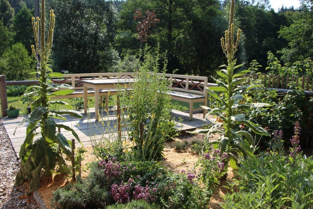 Zahrada v turisticky atraktivní lokalitě v centru Žďárských vrchů nabízí poznání zahradní architektury z přírodně dostupných materiálů a pěstitelského umění ženy domácnosti.