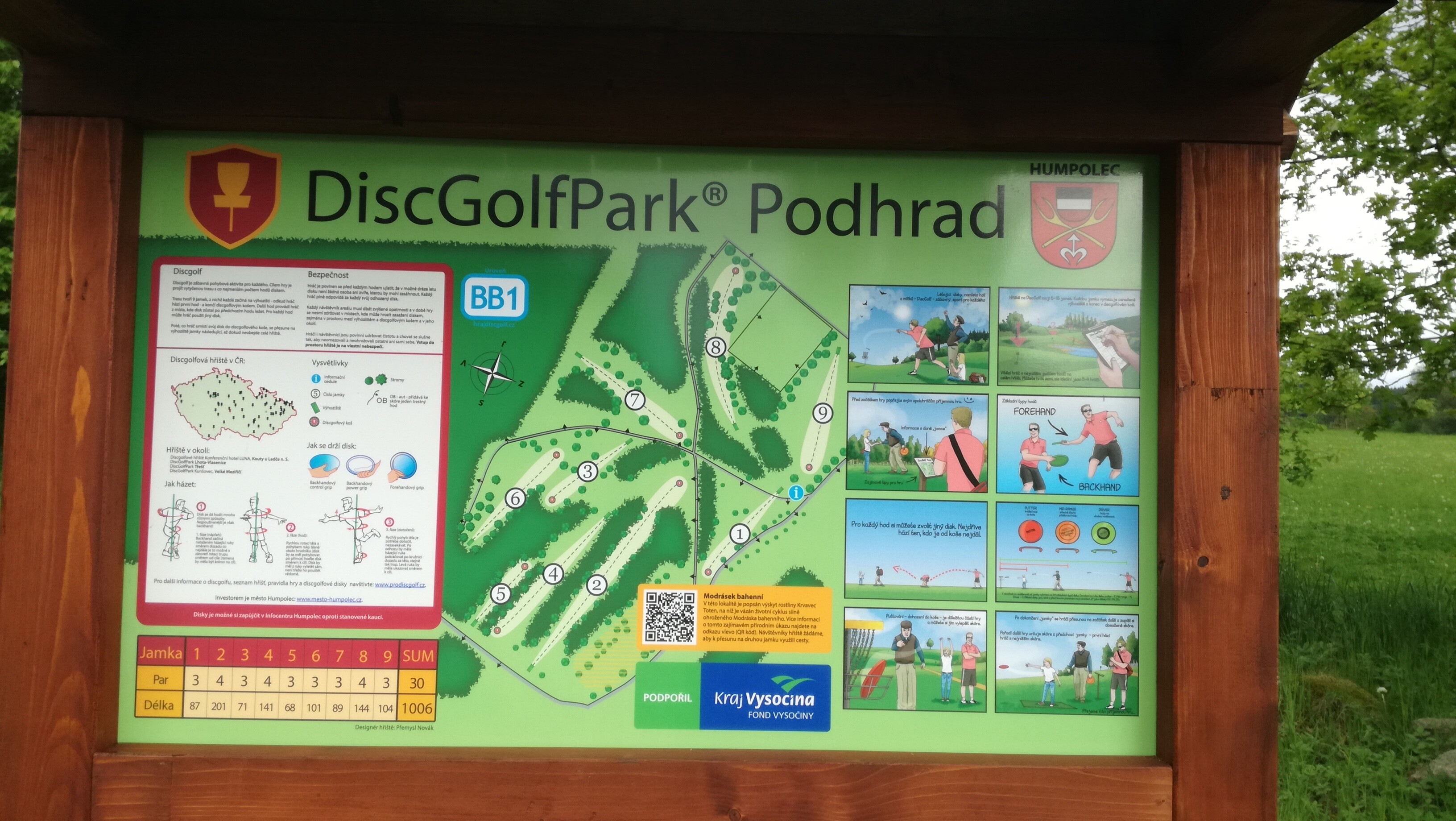 Krásné devítijamkové hřiště v lesoparku pod hradem Orlík, na dohled od dálnice D1, kde si můžete zahrát discgolf kdykoliv.