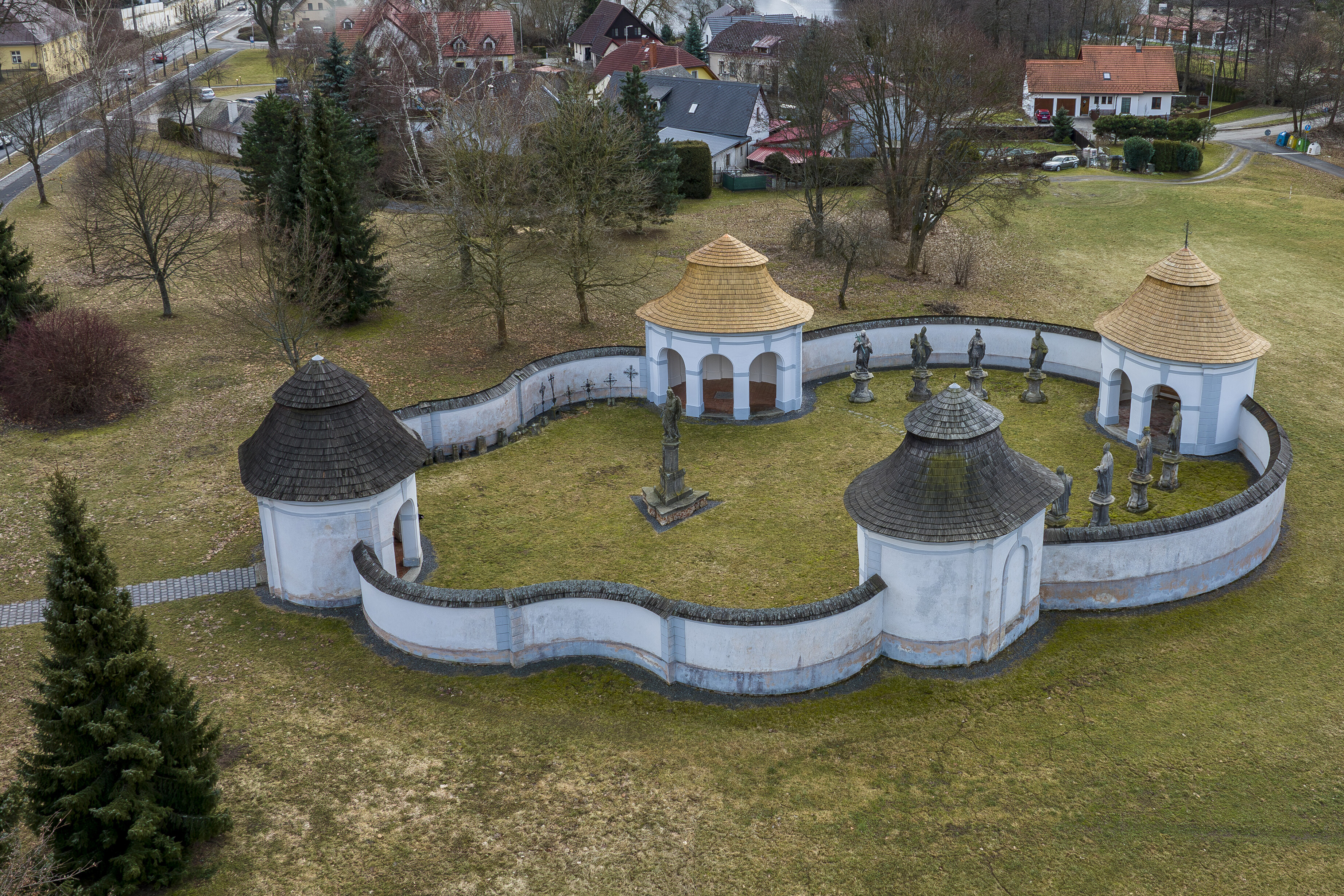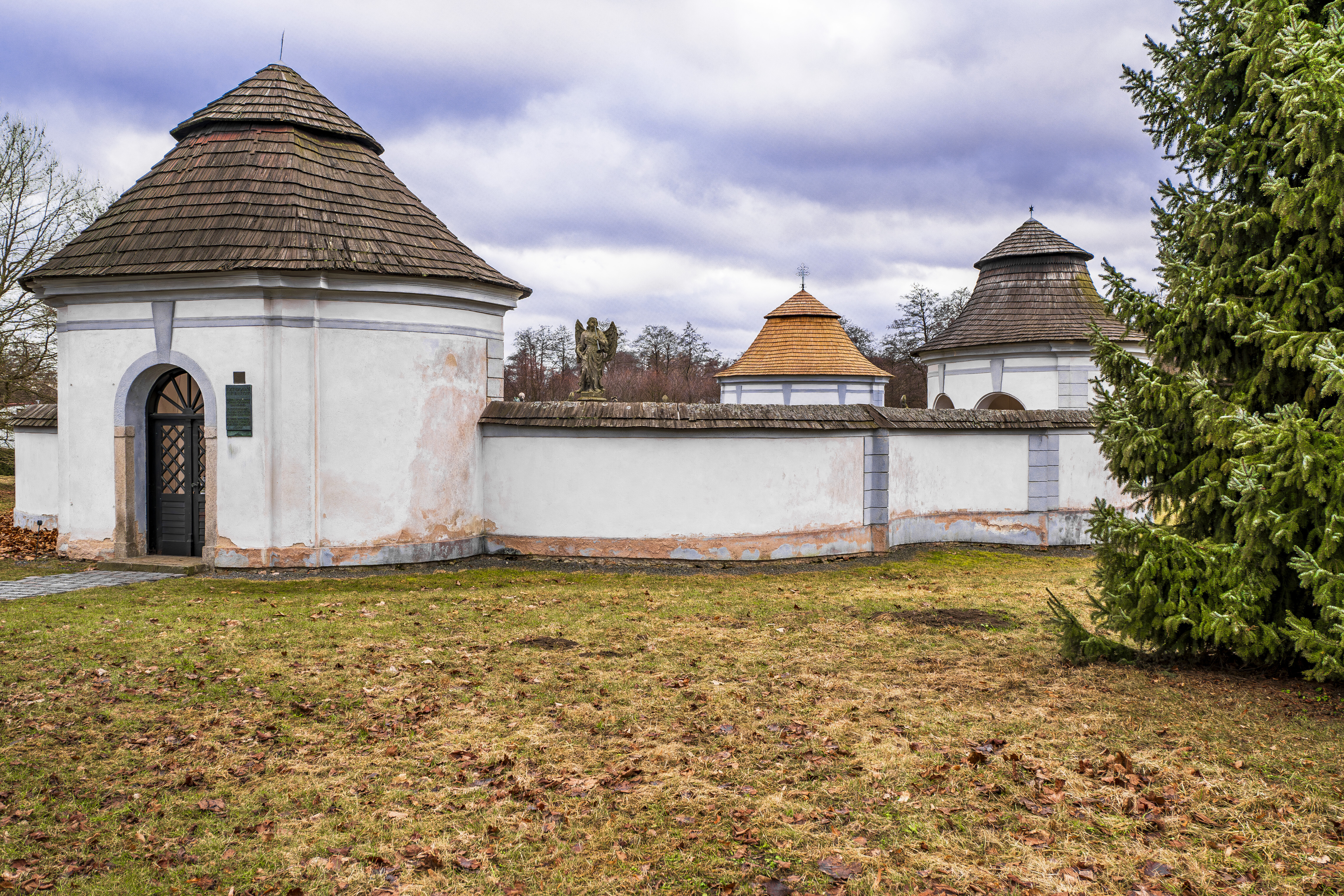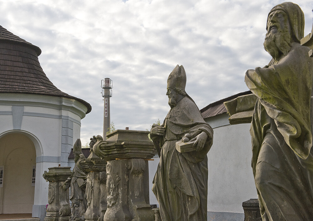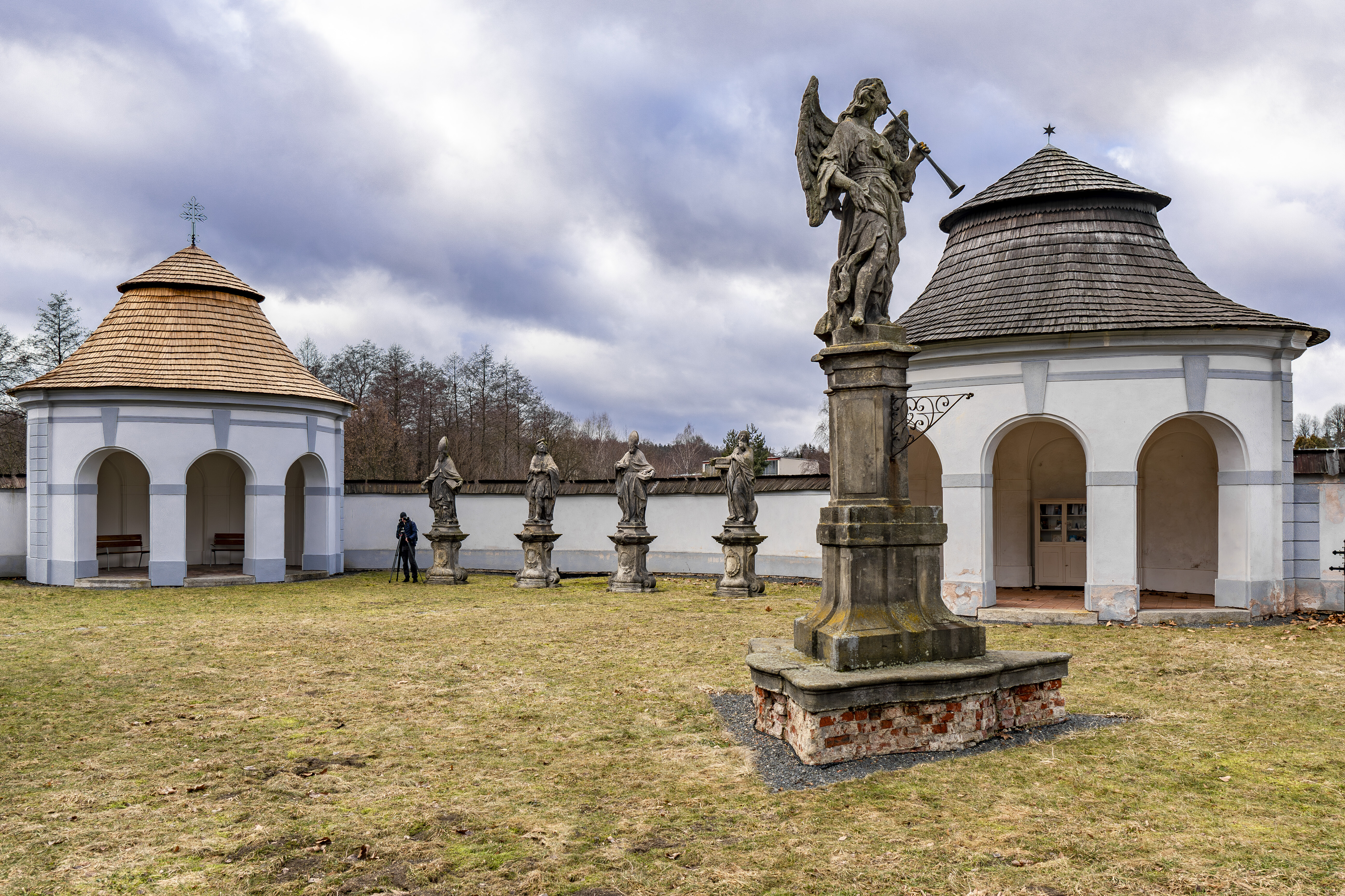 V areálu hřbitova jsou uloženy originály soch z nedalekého barokního mostu přes Stržský potok.