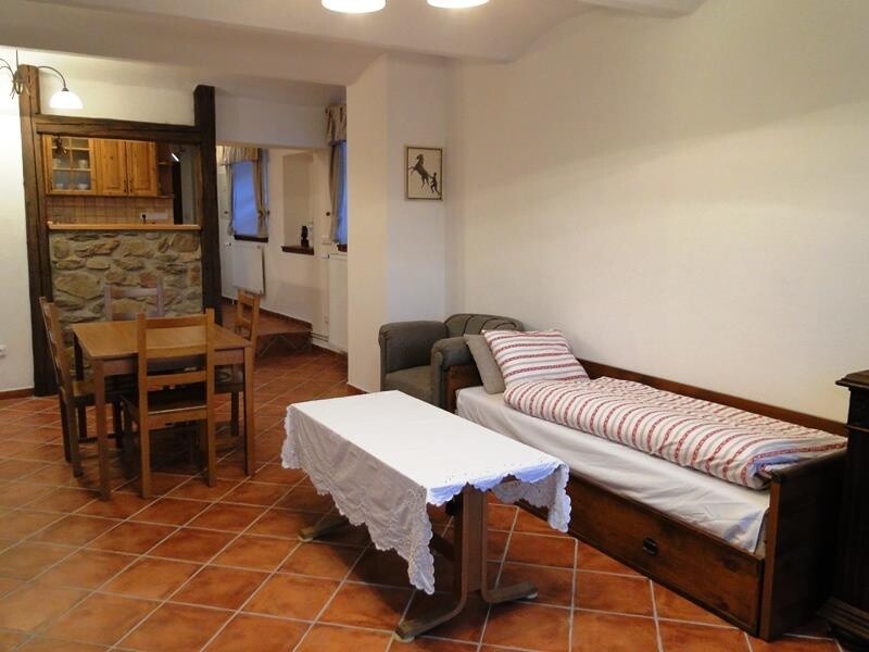 Pokud vám učaruje místní krajina a s koňmi byste rádi strávili více dní, ubytujte se přímo na farmě. V přízemním apartmánu budete mít k dispozici: