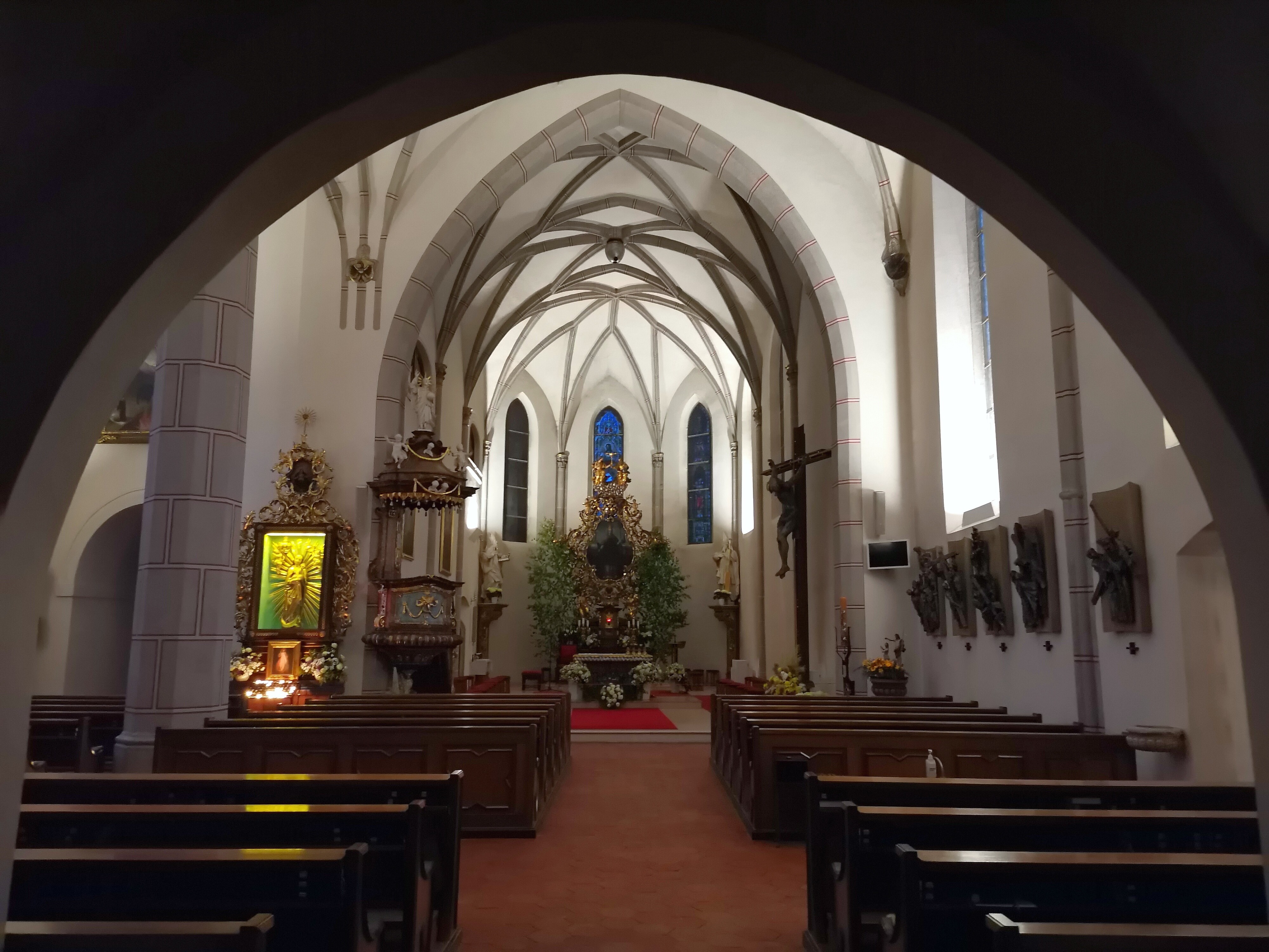 Obraz maloval roku 1778 kutnohorský malíř Kautsch. Za celkových oprav kostela v sedmdesátých letech v něm byla umístěna nová křížová cesta. Cínové reliéfy jsou replikou křížové cesty od sochaře Karla Stádníka v kostele sv. Václava v Olomouci. V těsné blízkosti stojí barokní kaple sv. Barbory, připisovaná architektu Santinimu.
