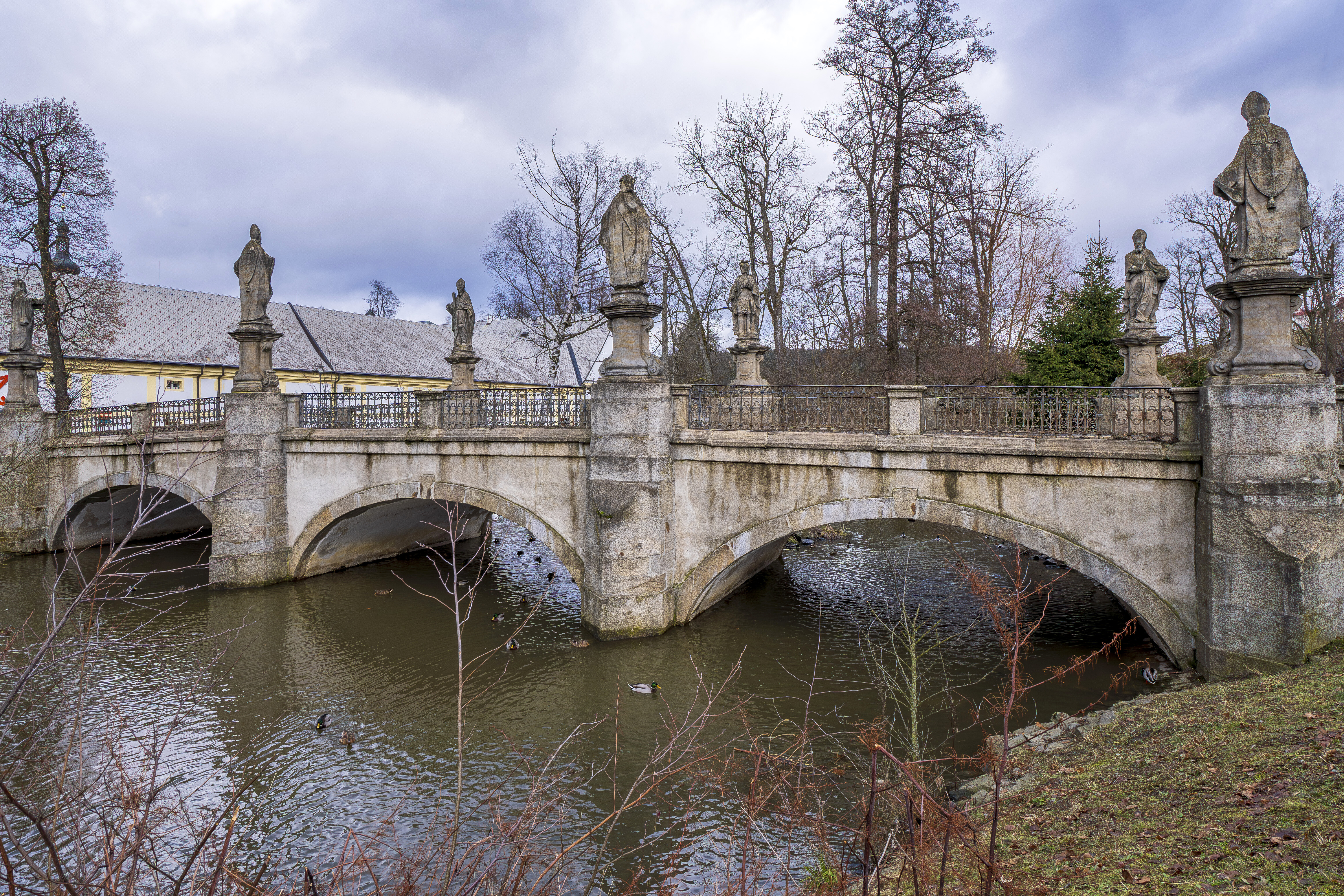 Barokní most v sousedství Zámku Žďár slouží svému účelu do dnešních dní. Na mostě jsou umístěny repliky soch světců, originály jsou uloženy v Dolním hřbitově.