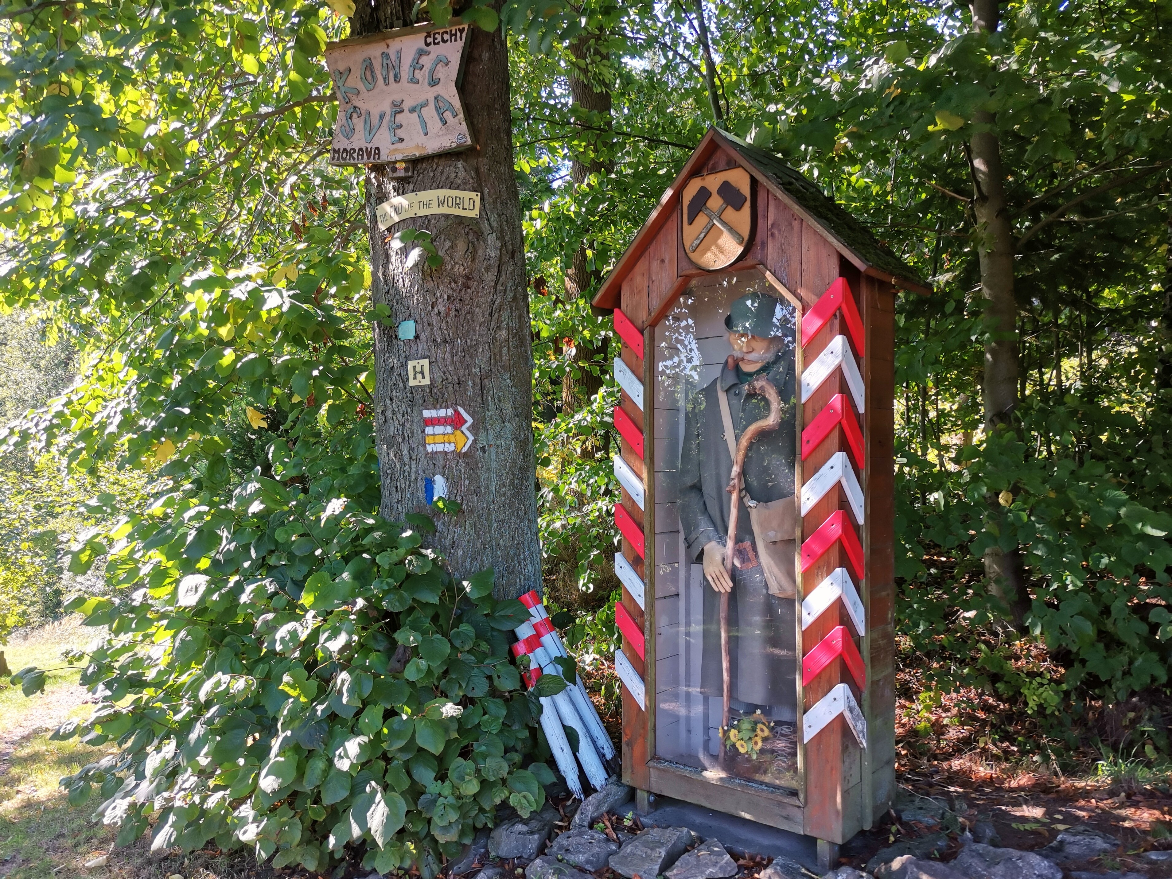 Hamry nad Sázavou – Místo zvané Na konci světa se strážní budkou a figurínou celníka se léta nachází na západním okraji osady Šlakhamry. Loni na podzim k němu přibyla také oficiální značka s nápisem Historická hranice Moravy.
