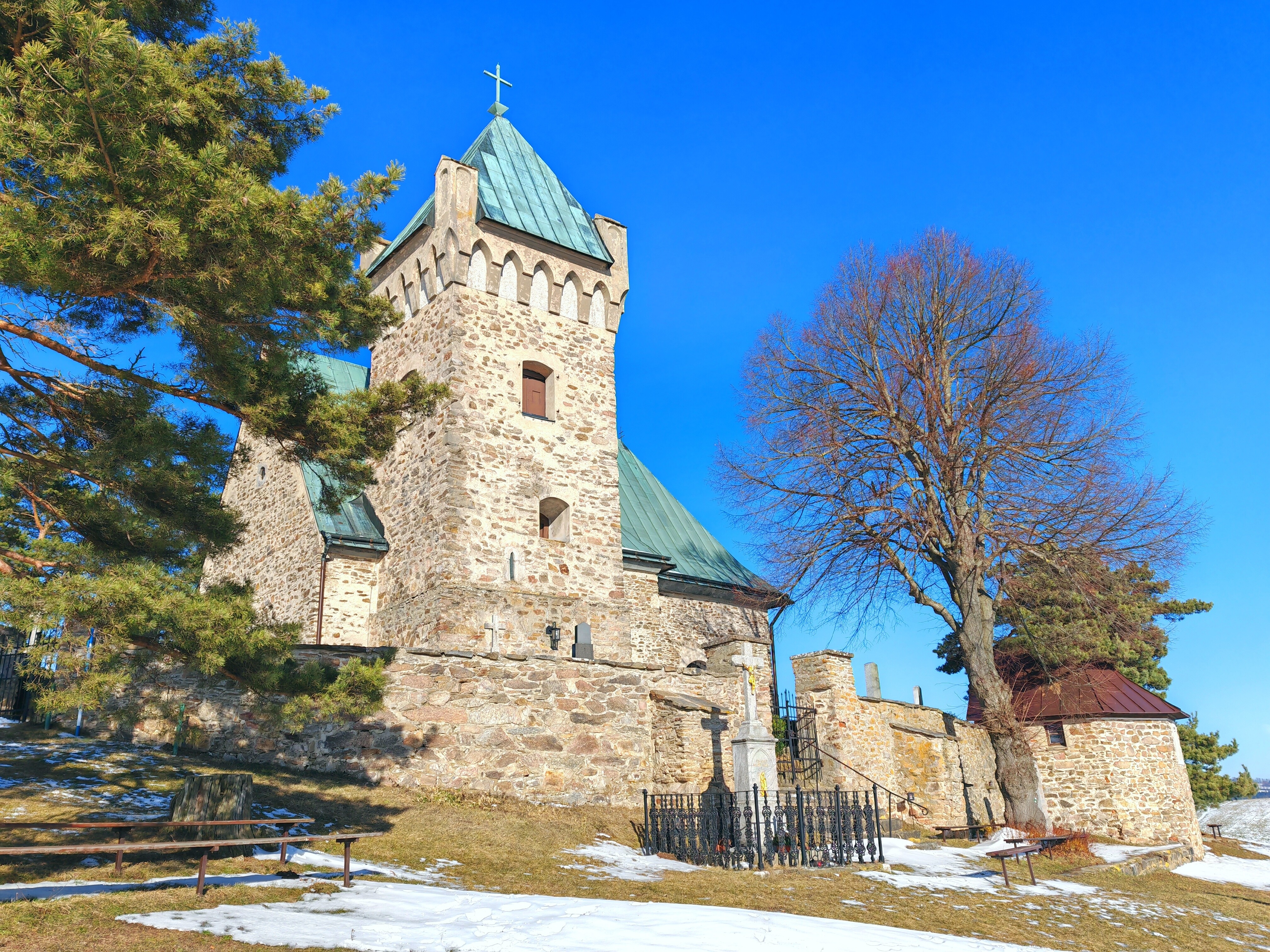 Kostel je zasvěcen sv.Michaelu archandělu. Jeho postava je vyobrazena po boku vítězného oblouku. Byl postaven na stávajícím hřbitově ve slohu románsko – gotickém asi kolem poloviny XIII.stol. jak dosvědčuje lomený vítězný oblouk, jižní vchod s kamenným portálem a původní štěrbinová lomeně klenutá okénka. V lodi je trámový strop z r.1967, starší použitý trám má letopočet 1661.