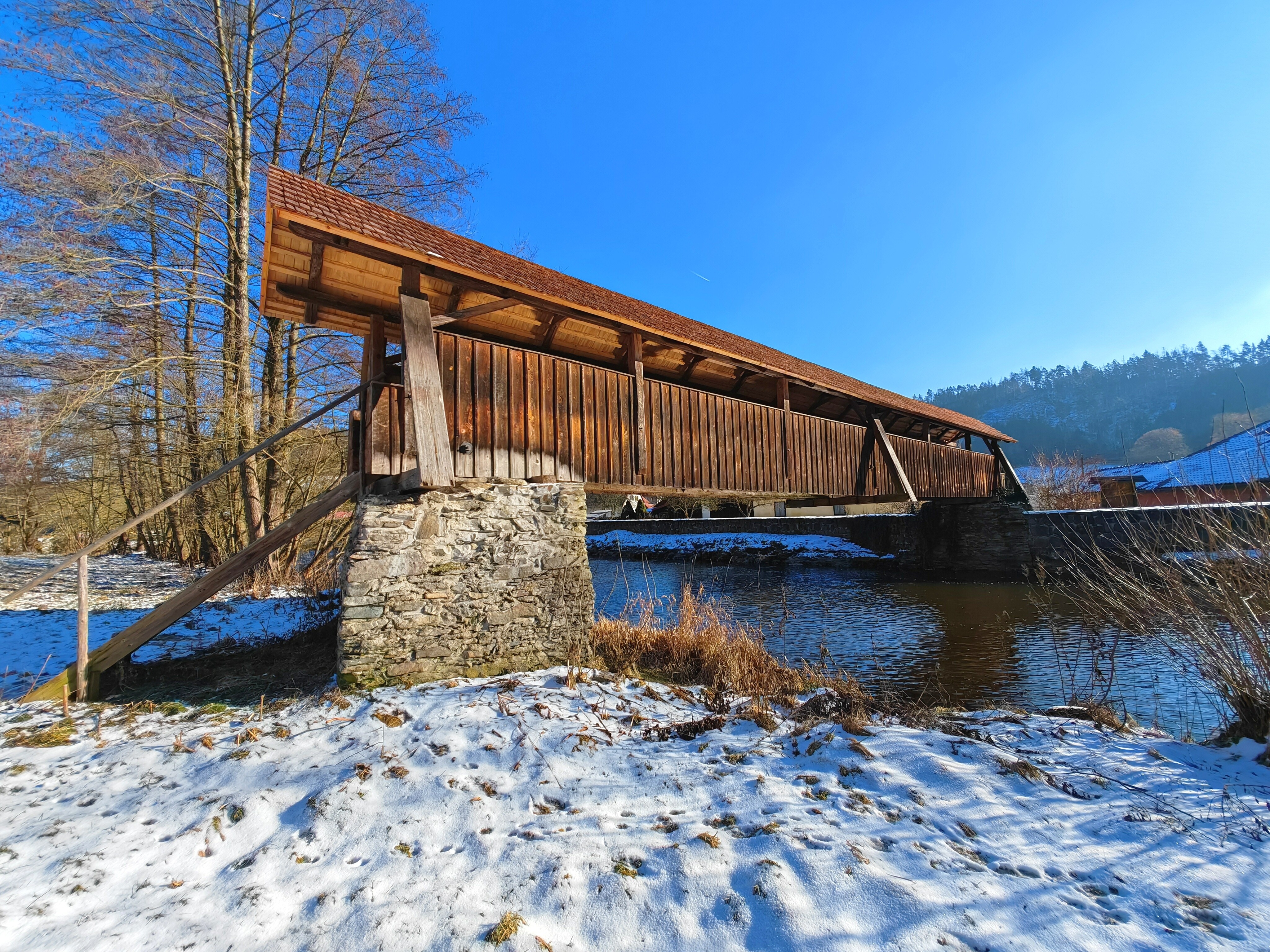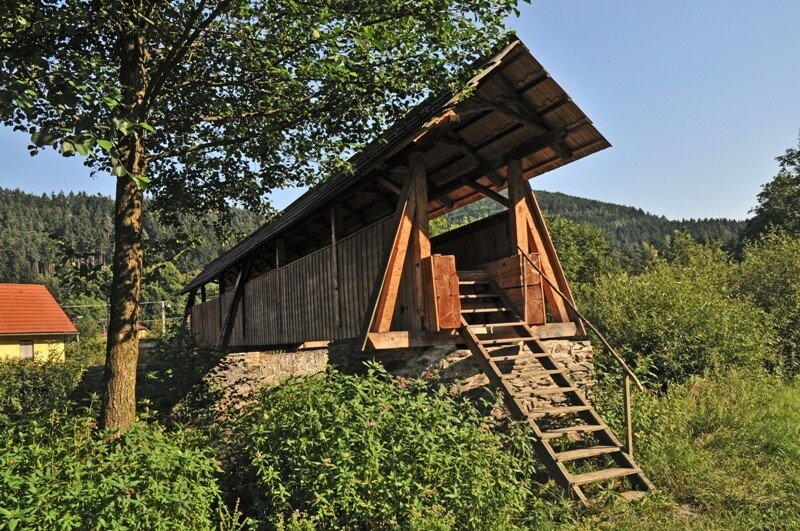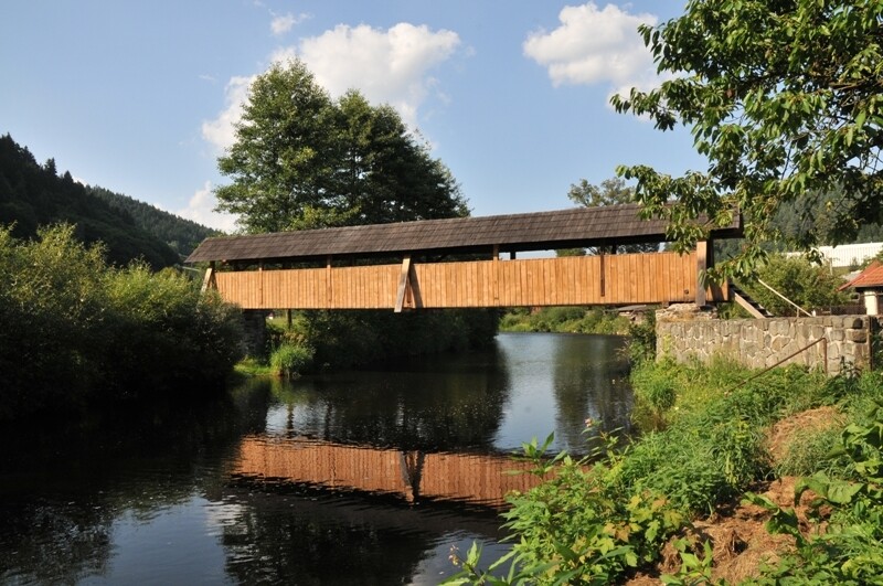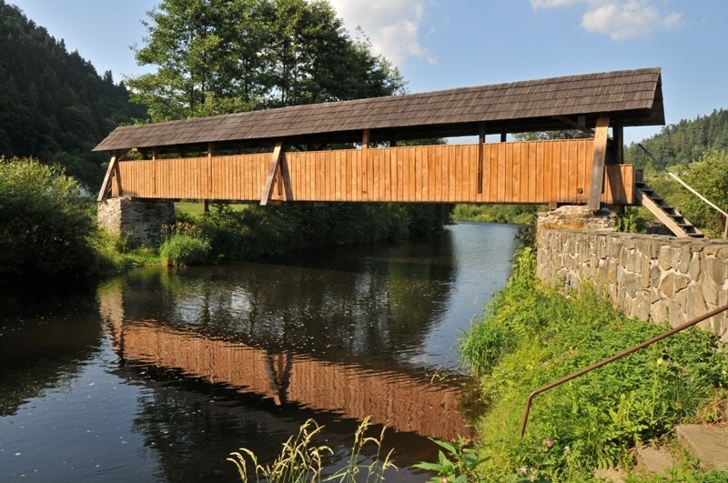 Dochovaná krytá dřevěná lávka přes řeku Svratku je zajímavou ukázku stavitelství na Bystřicku.