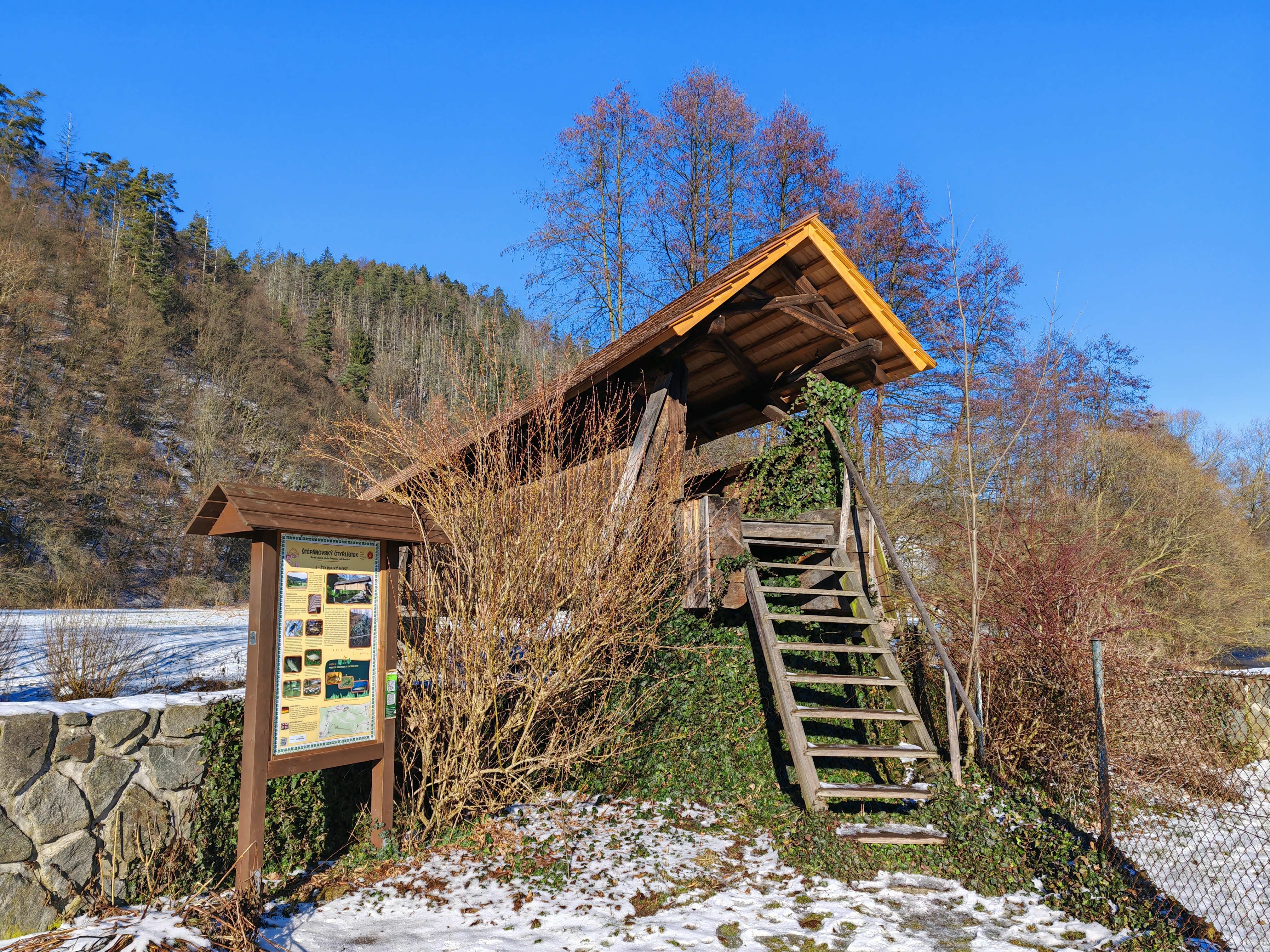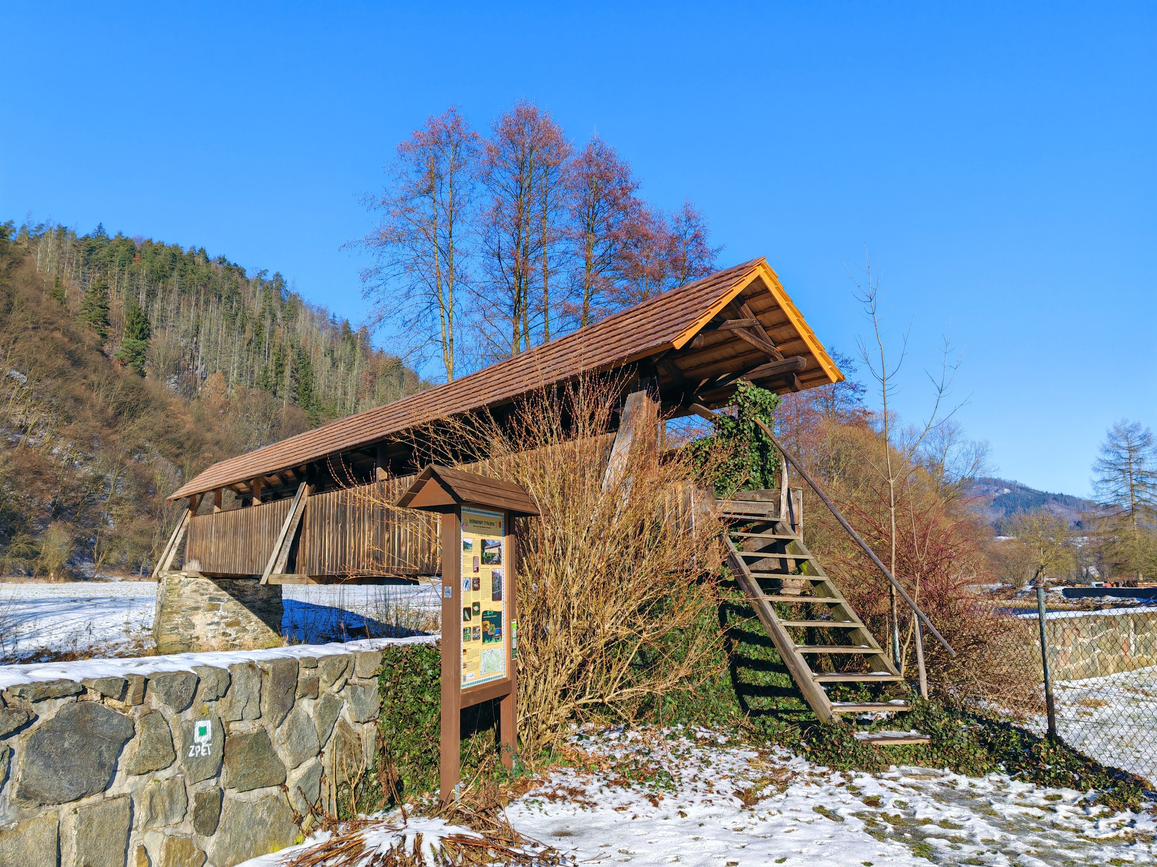 Krytá dřevěná lávka Švařec