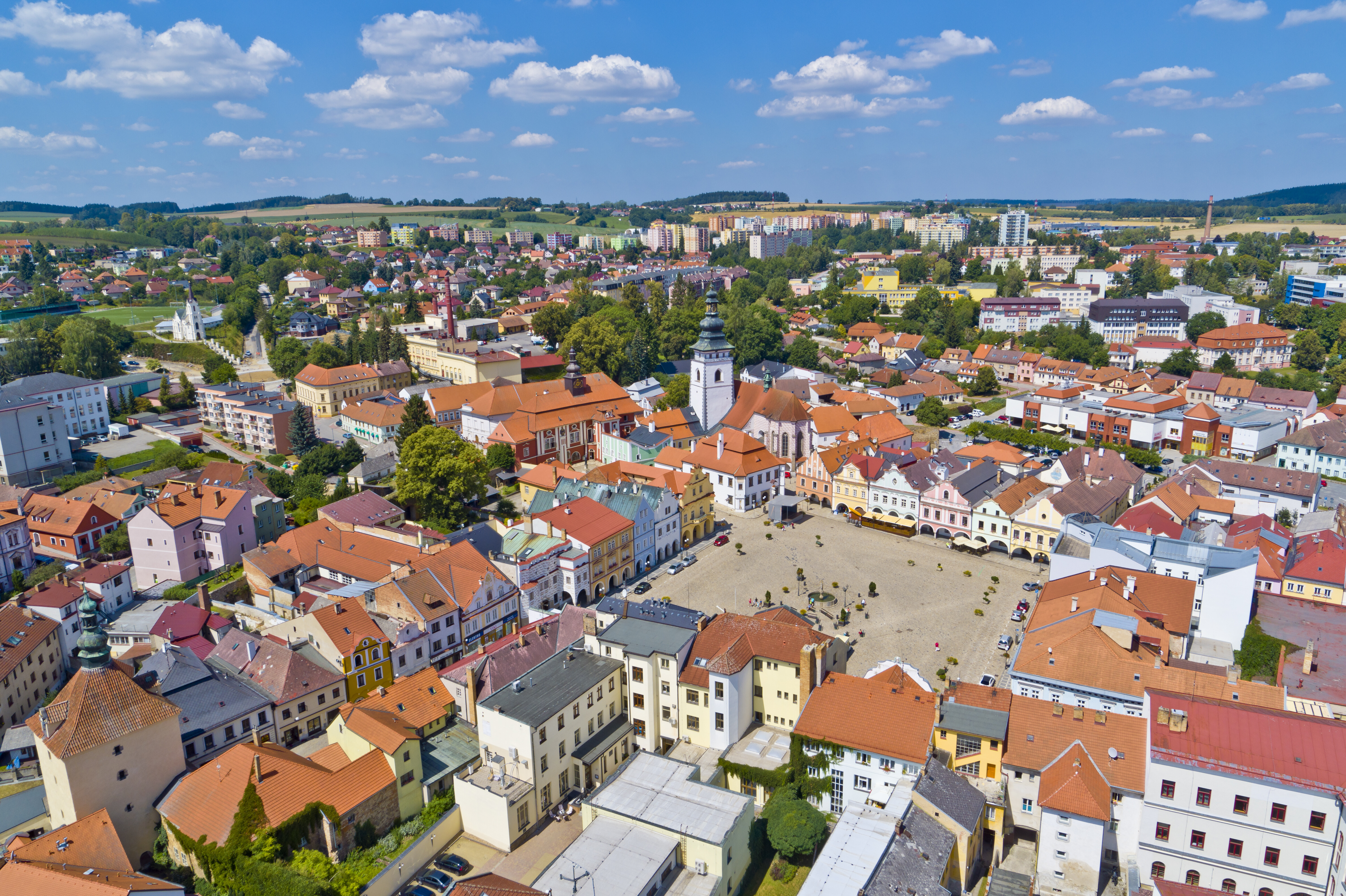 Ze stejného období pochází i Horní (Rynárecká) brána. Mezi nejhezčí domy patří Šrejnarovský dům na severní straně náměstí nebo Fárův dům v pozdně barokním slohu, který má kubistickou podobu.
