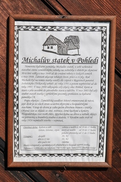 Selské muzeum a národní kulturní památka Michalův statek na návsi obce Pohleď nedaleko Světlé nad Sázavou je oblíbeným cílem rodinných výletů. Toto stavení uvidíte už z dálky, jako první vás zaujme dvůr uzavřený dřevěnými vraty.
