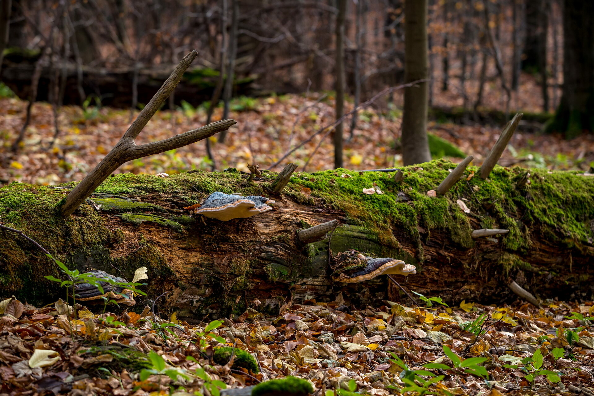 Bukové lesy jsou promíchány s javory klenem a mléčem, smrkem ztepilým, ojediněle zde roste olše lepkavá nebo jilm horský. Rozšířeny tam jsou lišejníky a mechorosty. Zjara se v podrostu rozkládají koberce bylin, jako svízel vonný a jedovaté vraní oko čtyřlisté. Ve vyšších polohách se vyskytuje ptačinec dlouholistý, ve vlhčích částech kromě kapradin čarovník alpský nebo rozrazil horský.