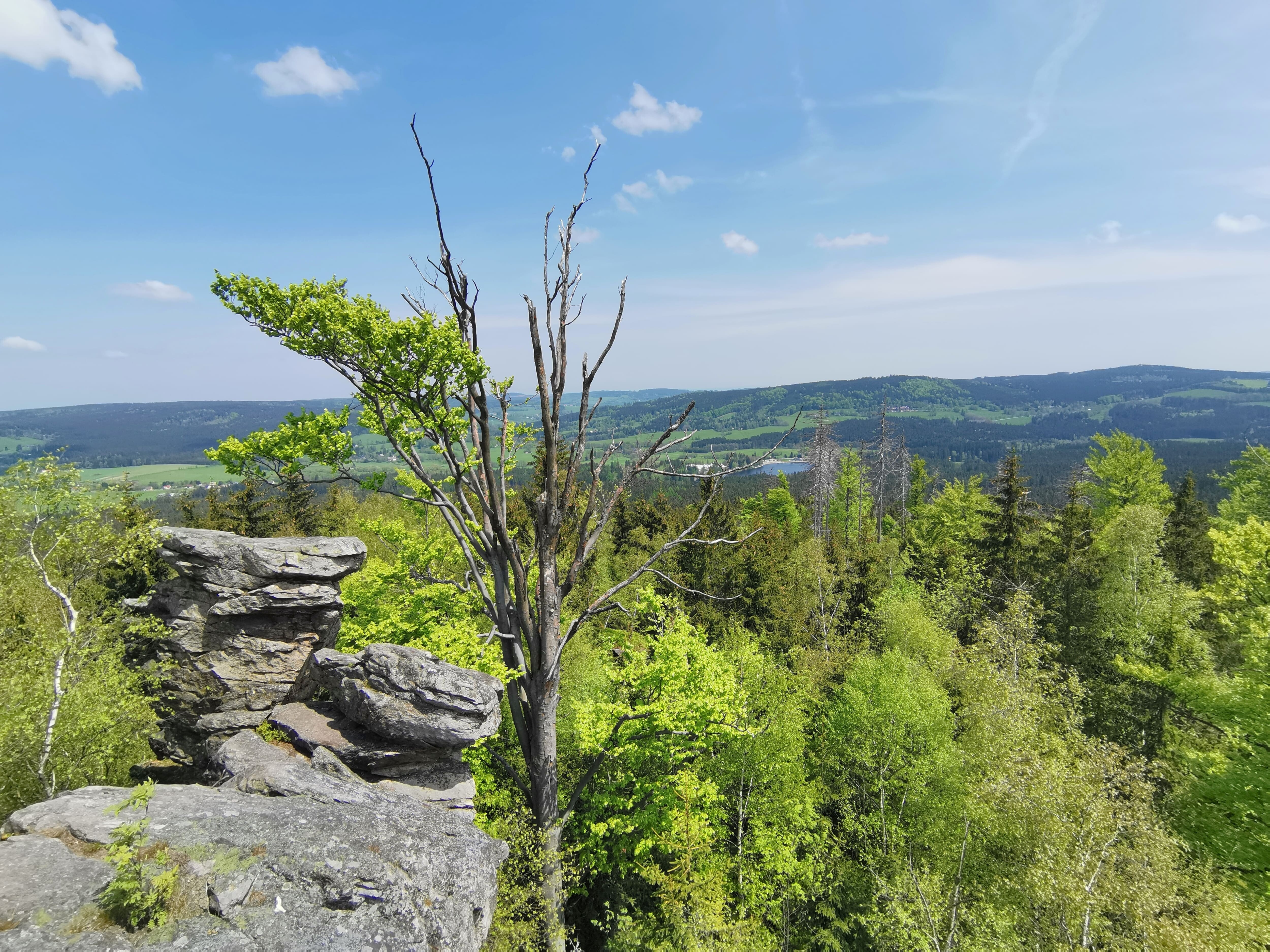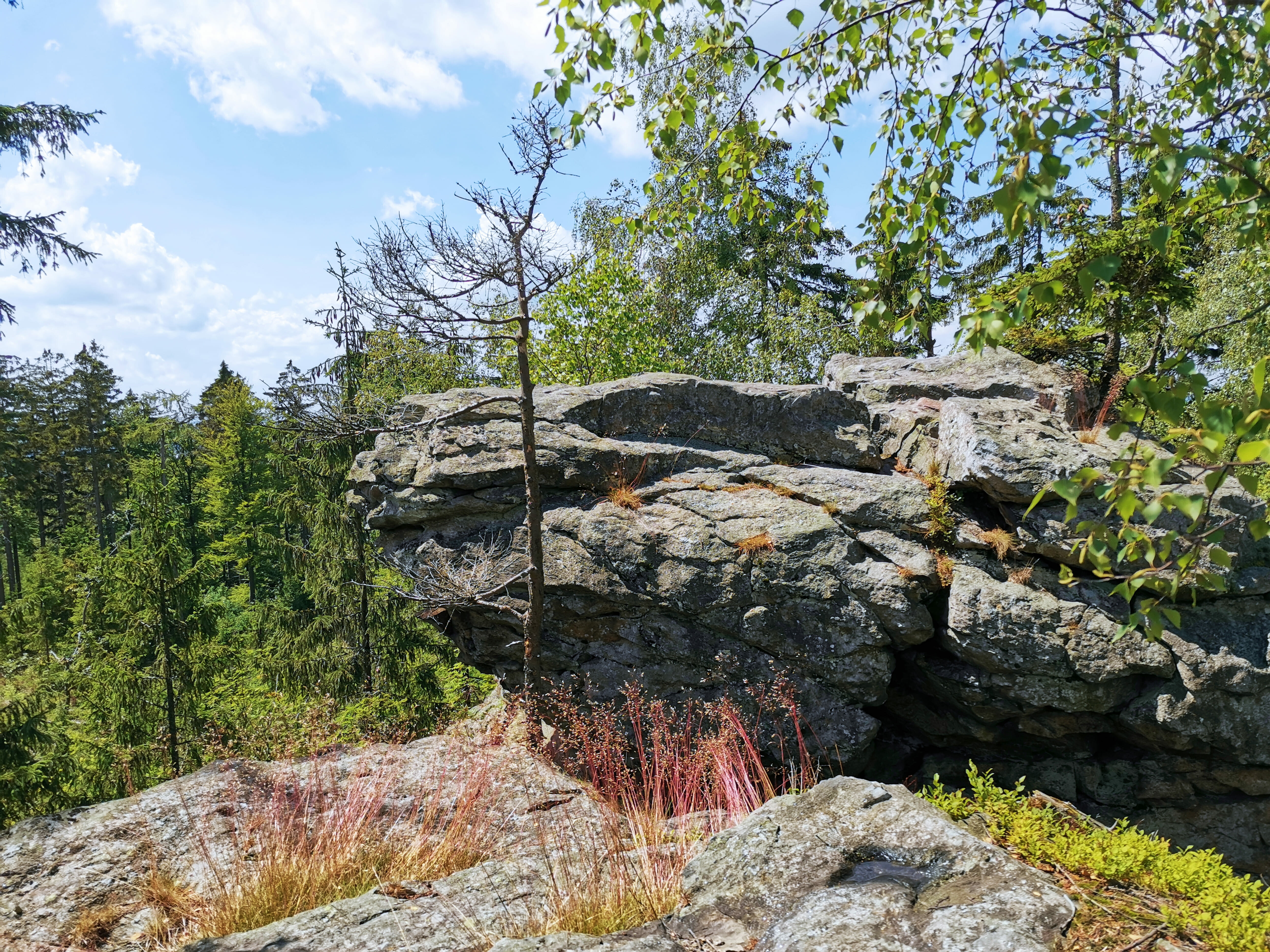 Nyní je čas zamířit na Malinskou skálu (811 m n. m.). Skupina rulových skalních útvarů dosahuje výšky až 20 metrů a je uspořádána do kruhu kolem vrcholu. Mezi nejvýznamnější z nich patří Výspa, Srnčí věž, Škuner a Buldok. Z vrcholu skály se naskýtá úžasný výhled na okolní krajinu.