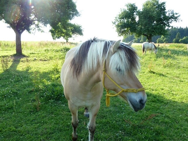 Koně mají k dispozici dva vnitřní boxy a výběh s pevným hrazením. Sedlovna, možnost sprchování koní. V místě dvě klisny plemene fjord.