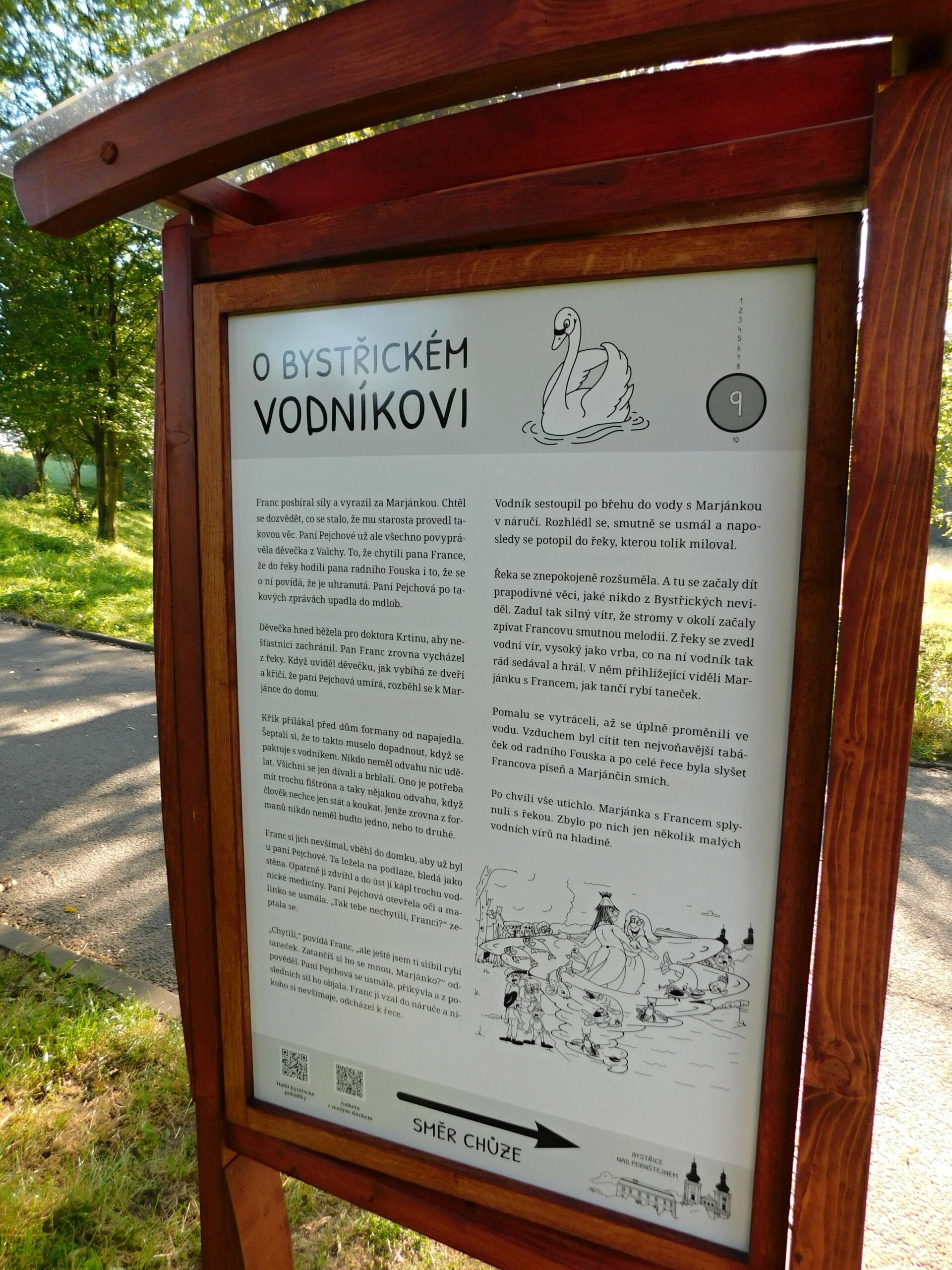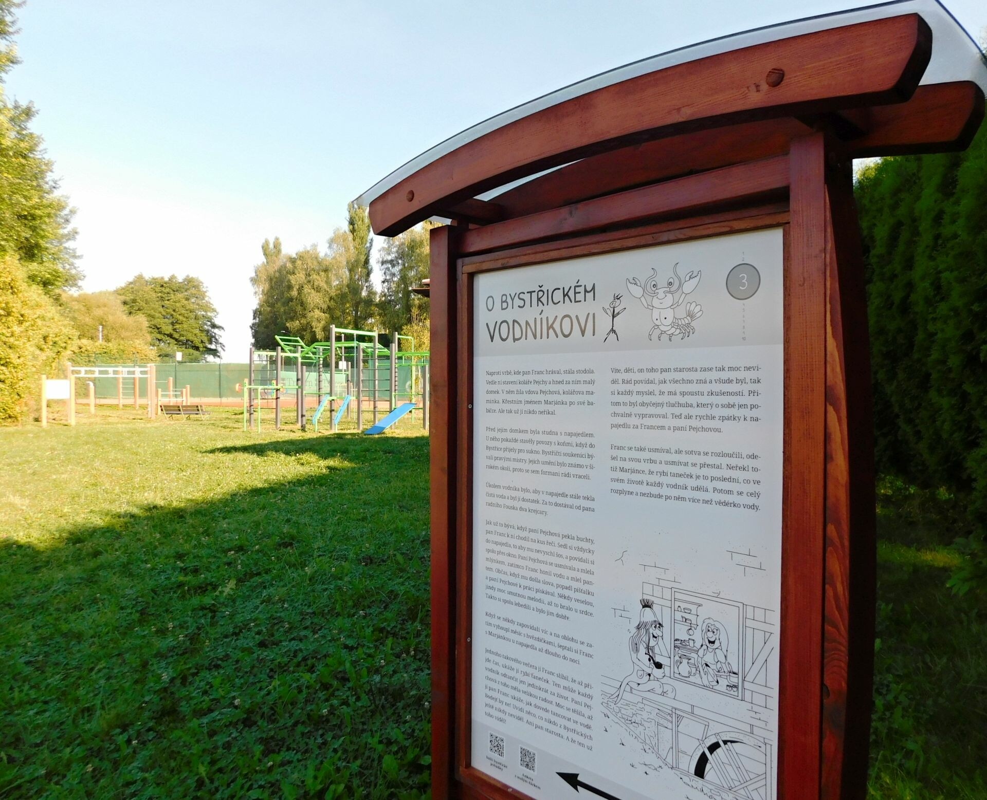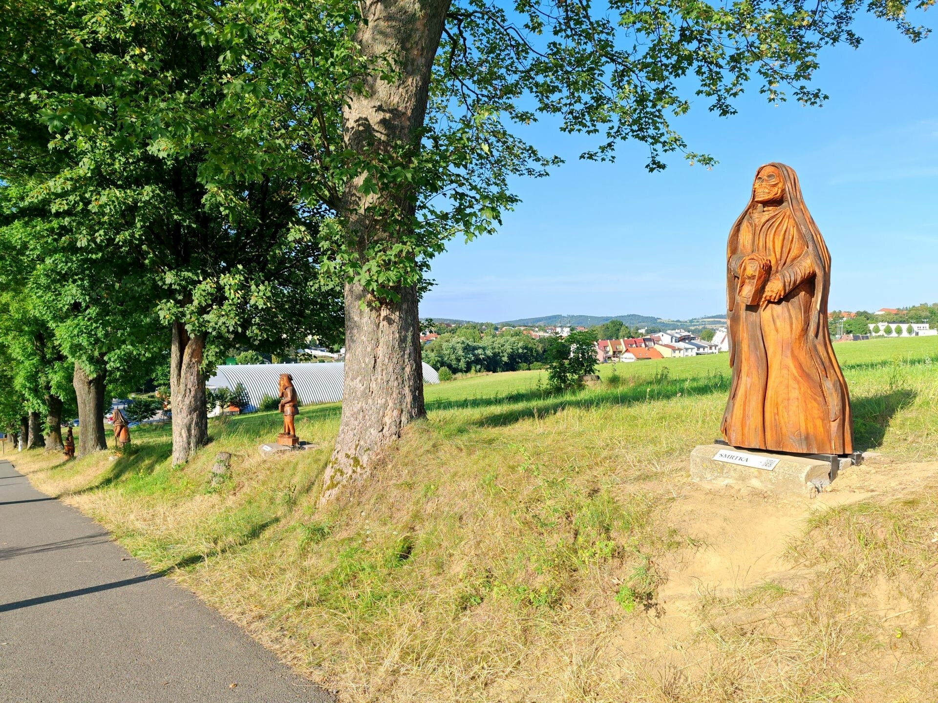 Hned vedle parku se nachází alej s dřevěnými sochami pohádkových a nadpřirozených bytostí. Nechybí vodník, princezna, hloupý Honza, víla ani čert. U každé sochy najdete QR kód s úkoly, které se většinou plní na překážkách dětského lanového parku na druhé straně cesty. Lanové překážky kromě toho zpříjemní dětem procházku vedoucí pěšinou do kopce.