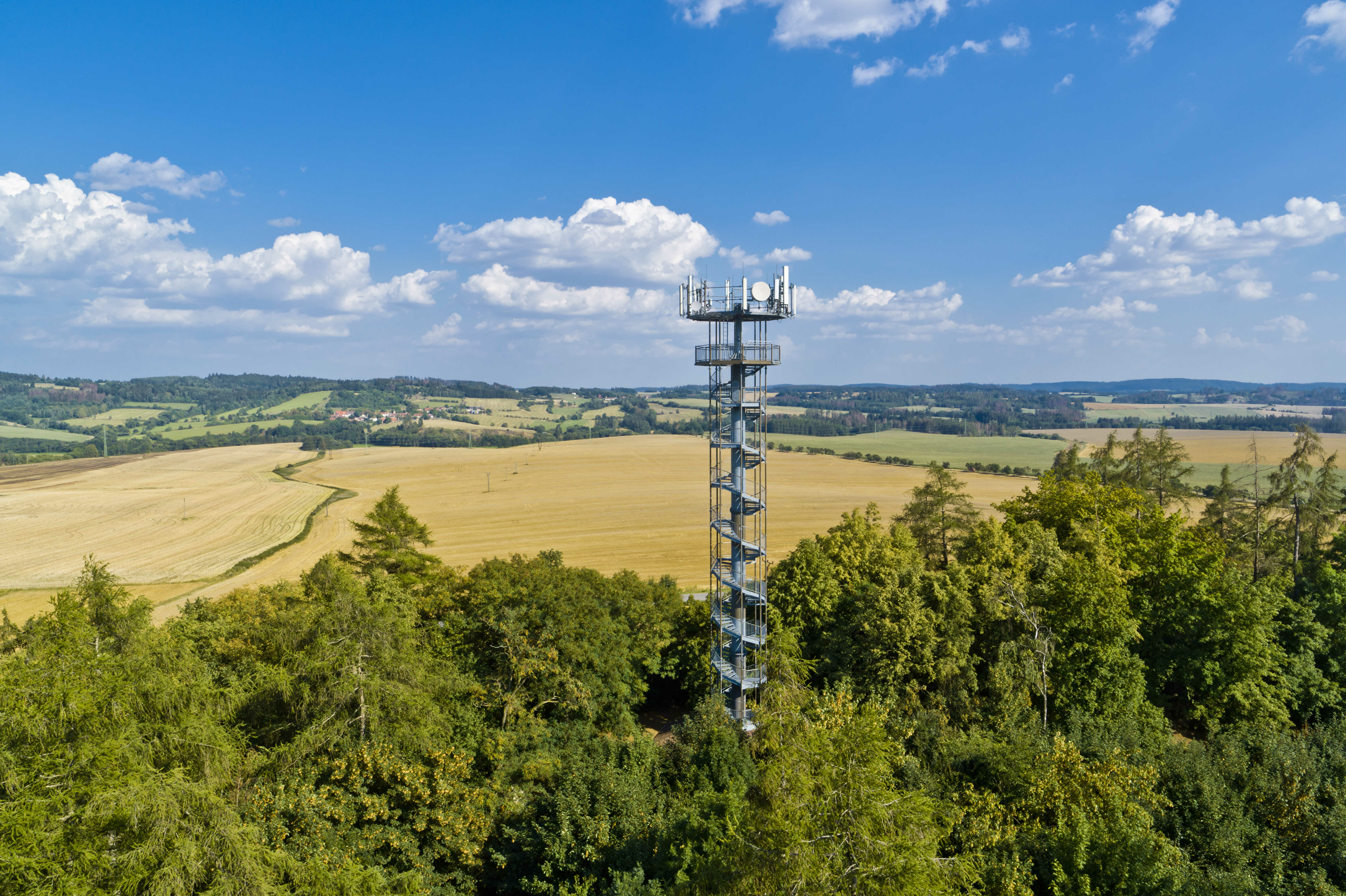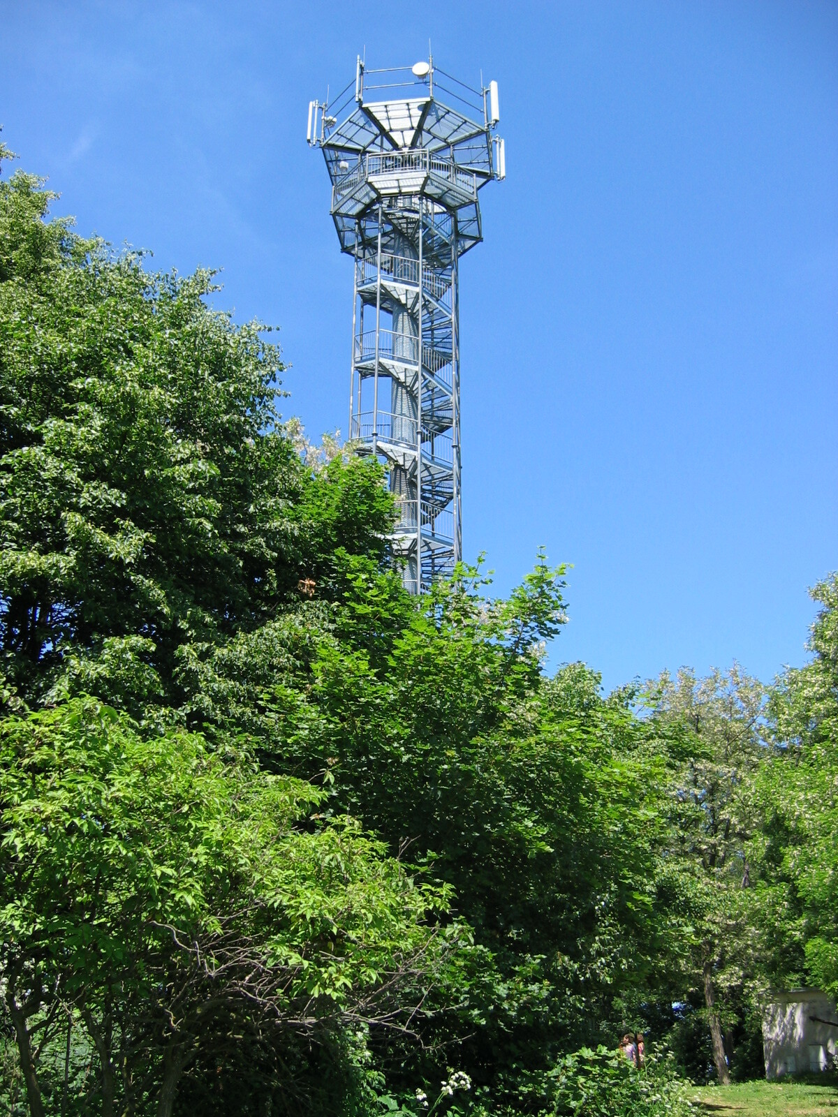 Na tomto vršku pak na konci 19. století vybudovali první rozhlednu. Byla dřevěná a měřila 16 metrů. Hlavním iniciátorem její výstavby v roce 1898 byl profesor telčské reálky Alois Kulhánek. V roce 1999 postavila na stejném místě firma RadioMobil základnovou stanici pro přenos signálu mobilních telefonů. Podmínkou města Telče, které je vlastníkem pozemku, bylo, aby stavba byla řešena jako veřejně přístupná rozhledna.