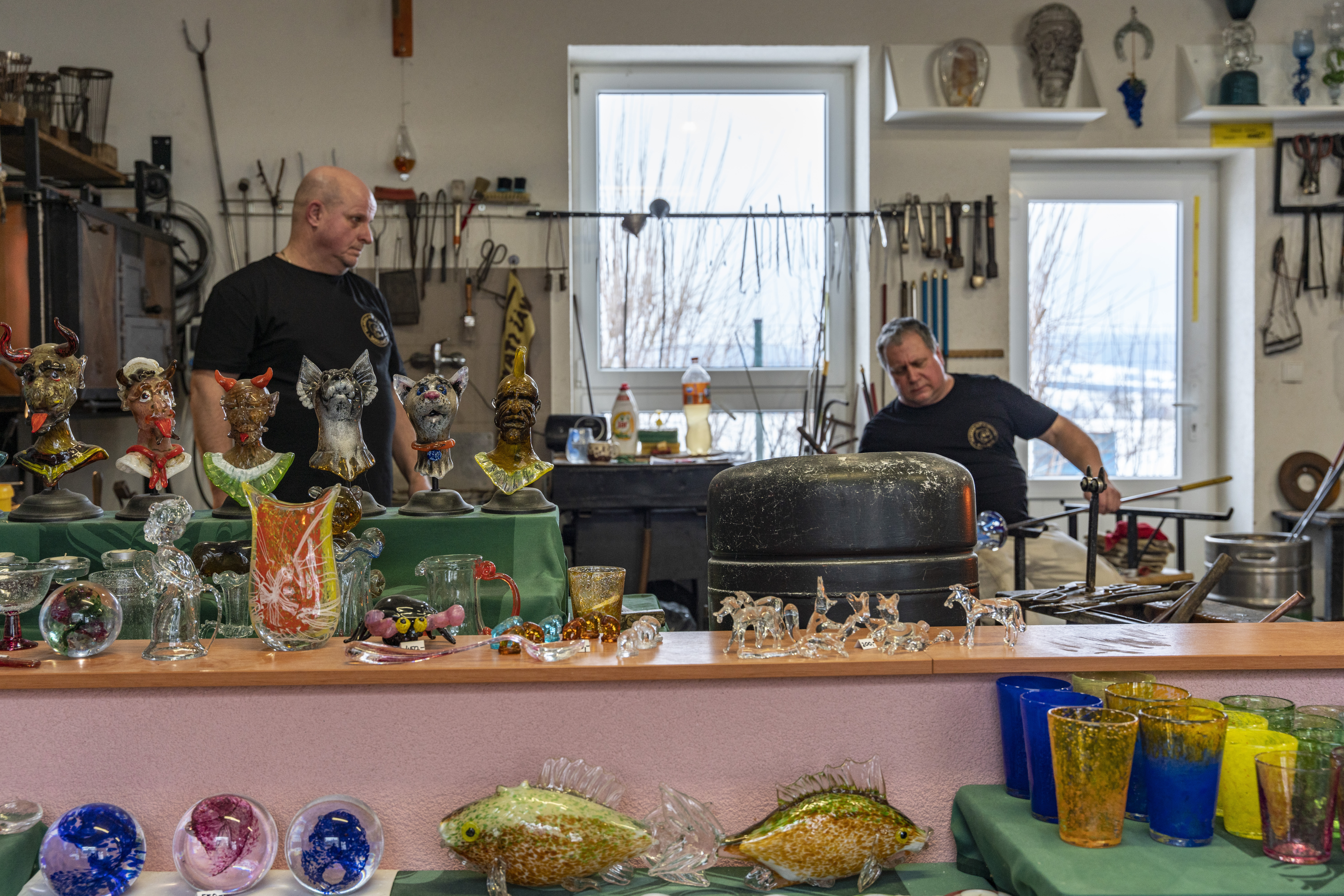 Virtuální prohlídkaPo předchozí objednávce mohou pod vedením skláře vytvořit svůj vlastní výrobek při tzv. skláření. Součástí sklárny je i prodejna, kde je možné si zakoupit dárkové předměty a nápojové sklo denní potřeby.