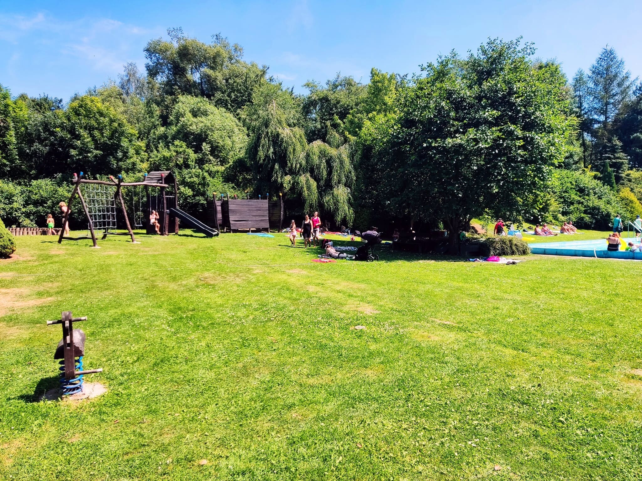Malé děti si dále mohou hrát na pískovišti a na houpačkách. Převlékárny jsou v prostoru koupaliště. Voda je čištěna pískovými filtry...