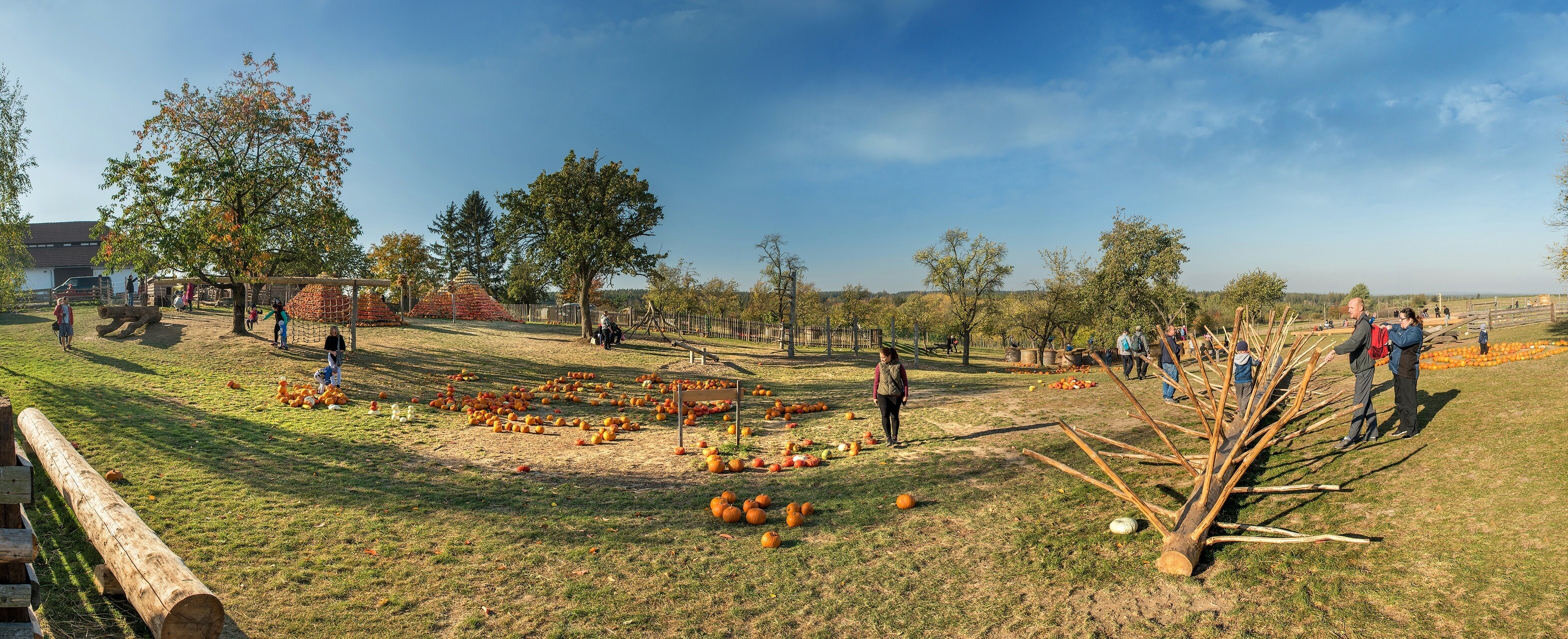 V zahradách se děti vydovádí na přírodním hřišti s dřevěnými a slaměnými atrakcemi jako slámohrad nebo slámobazén. Připravené je i dřevěné bludiště a zóna pro hraní, kde mají hlavní roli – jak jinak než – dýně. Děti si pod dohledem mohou také vylézt na kombajn.