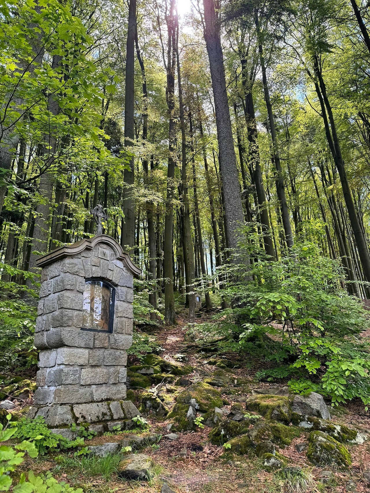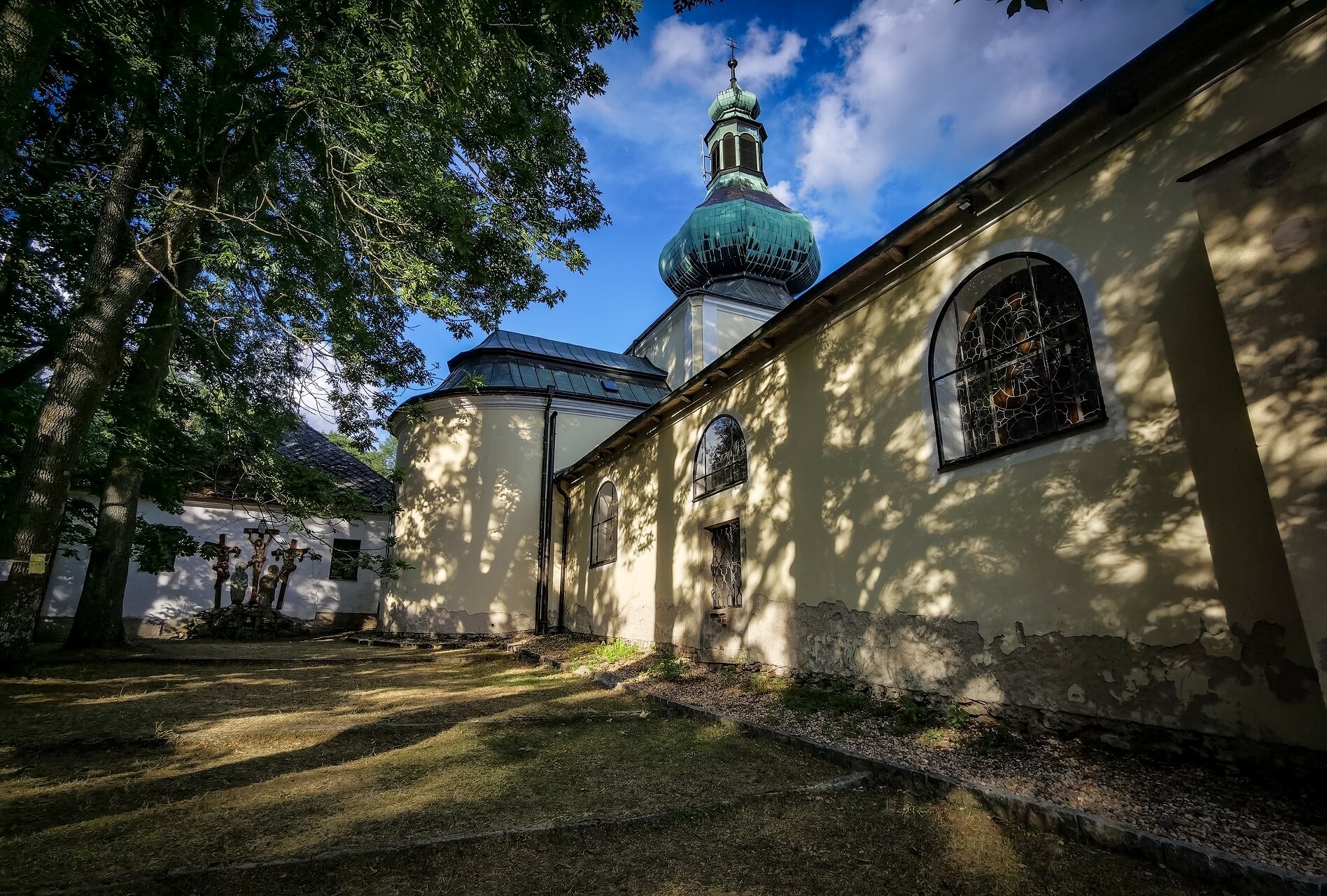 Křížová cesta z roku 1906 směřuje k poutnímu kostelu Nejsvětější Trojice od pramene Zázračná studánka. Zakončuje ji Boží hrob.