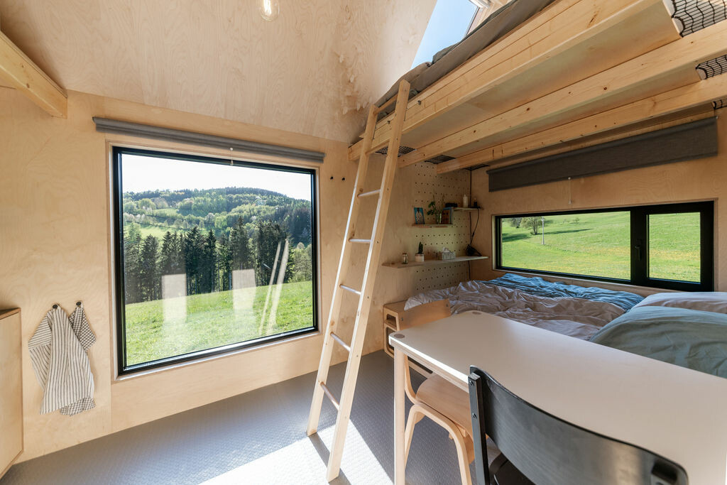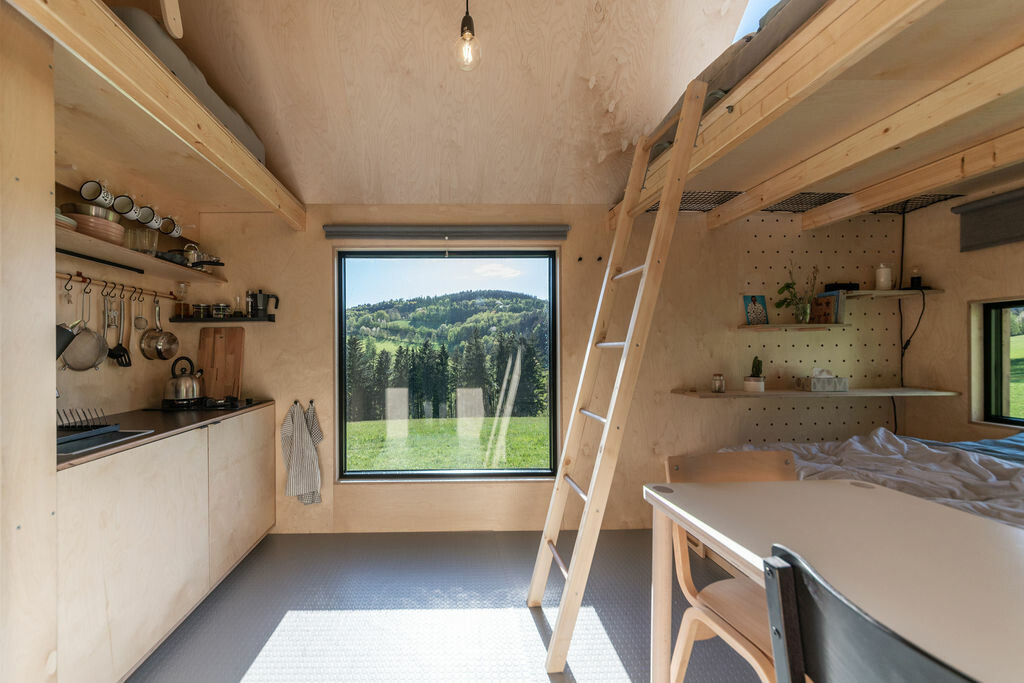 V srdci kopců Vysočiny, obklopené lesy, loukami a malebnými zemědělskými staveními, naleznete naši mobilní dřevostavbu, neboli tiny house. Tato jedinečná stavba na kolečkách, vytvořená architekty ze 3petrici studio, vám nabízí nevšední zážitek. Díky své mobilitě můžete zažít různé kouty Vysočiny, stačí pouze silnější auto a touha po dobrodružství.