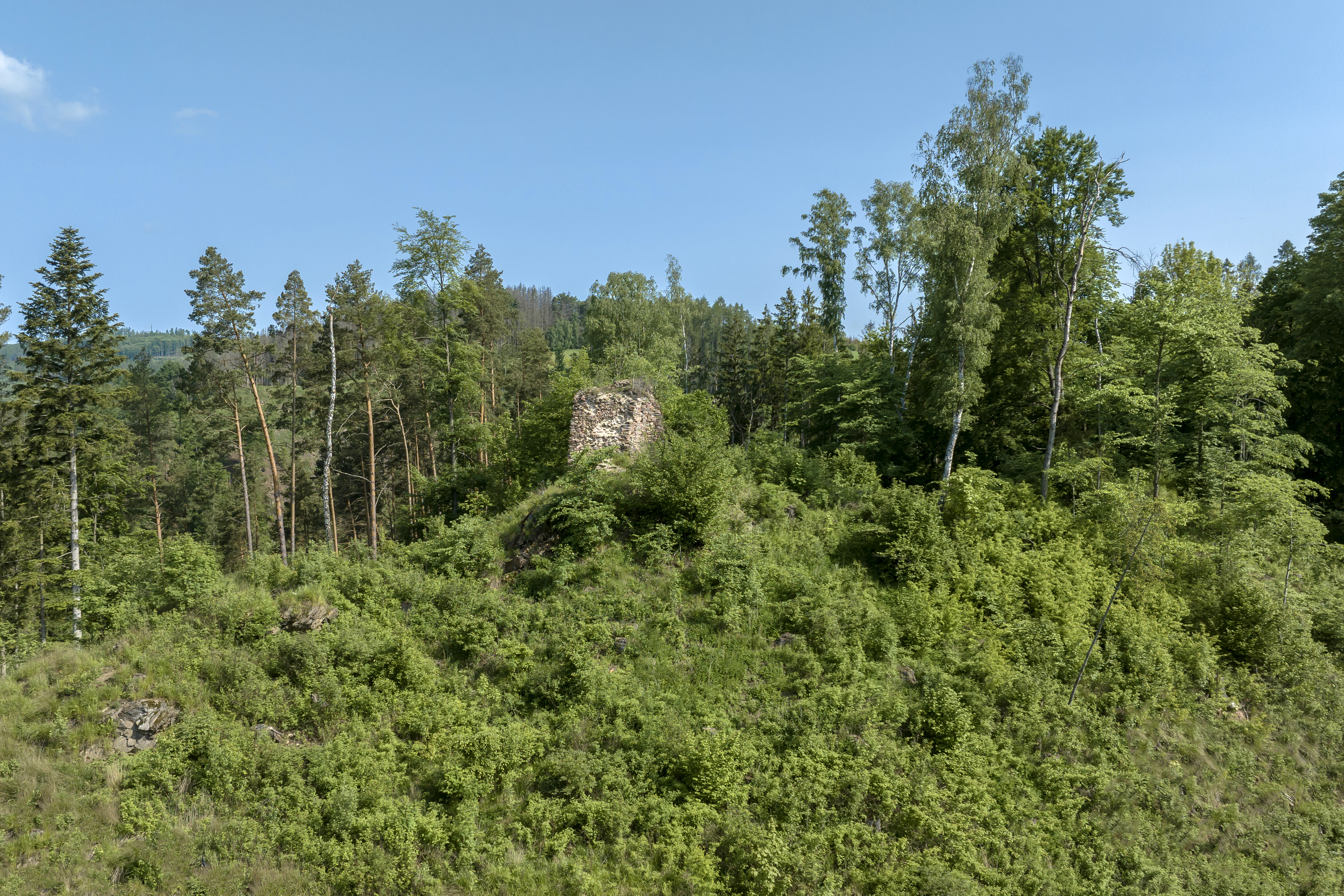 Virtuální prohlídkaPozůstatky středověkého hradu stojí na táhlém horském hřebenu obtékaném říčkou Bystřičkou poblíž obce Dvořiště. Založili ho pravděpodobně Pernštejnové, pod jejichž správu ve 13. století území patřilo. V roce 1403 je hrad uváděn už jako pustý. Přes pokročilý rozpad zdiva je patrné původní rozložení hradu. Přístupová cesta vedla přes 16 metrů široký a 13 metrů hluboký příkop a na hradní nádvoří se muselo projít několika branami. Nejvýraznějším je pozůstatek hlavní válcové věže.