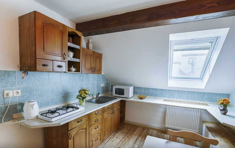 Každý apartmán má vlastní vybavenou kuchyni s lednicí, mikrovlnnou troubou, sporákem, varnou konvicí, hrnci i nádobím. Samozřejmostí je také sociální zařízení a vlastní vchod. V celém objektu se bez problémů připojíte k internetu díky Wi-Fi.
