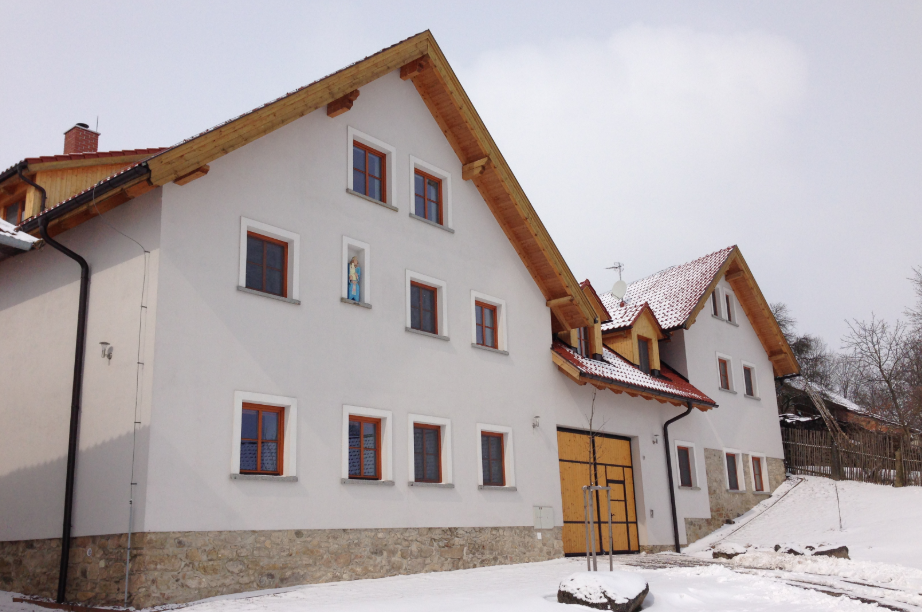 Usedlost tvoří uzavřený dvůr, organicky propojující obytnou a hospodářskou část se společenskými prostory a místem určeným výhradně pro sportovní vyžití.