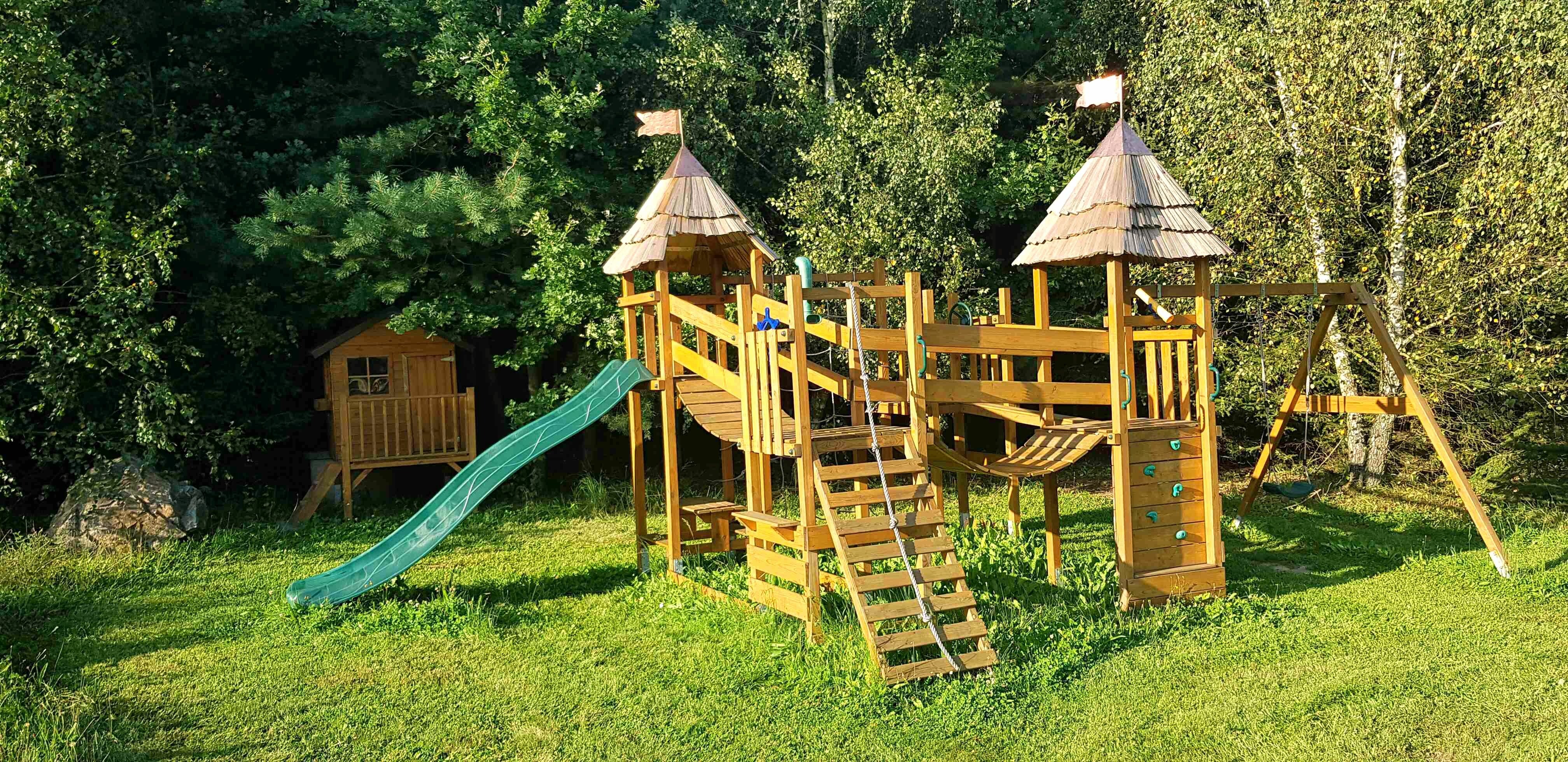Kromě toho zde najdete i oslíka, prasátko a spoustu drůbeže od hus a krůt až po perličky a slepice. Ubytovací část leží zhruba 800 m od samotné farmy na louce uprostřed lesa a u rybníka. Chaty stojí na jeho břehu. Bezprostředně okolo chat jsou další 2 sportovní rybníky. K ubytování nabízí 2 roubené chaty s kapacitou 9 a 5 lůžek a k dispozici je hostům sauna, dětské hřiště a sportovní část se stolním tenisem, rotopedem, stolním fotbálkem a kulečníkem. Hosté mohou využívat i ohniště , grilovací místo a výbornou udírnu.