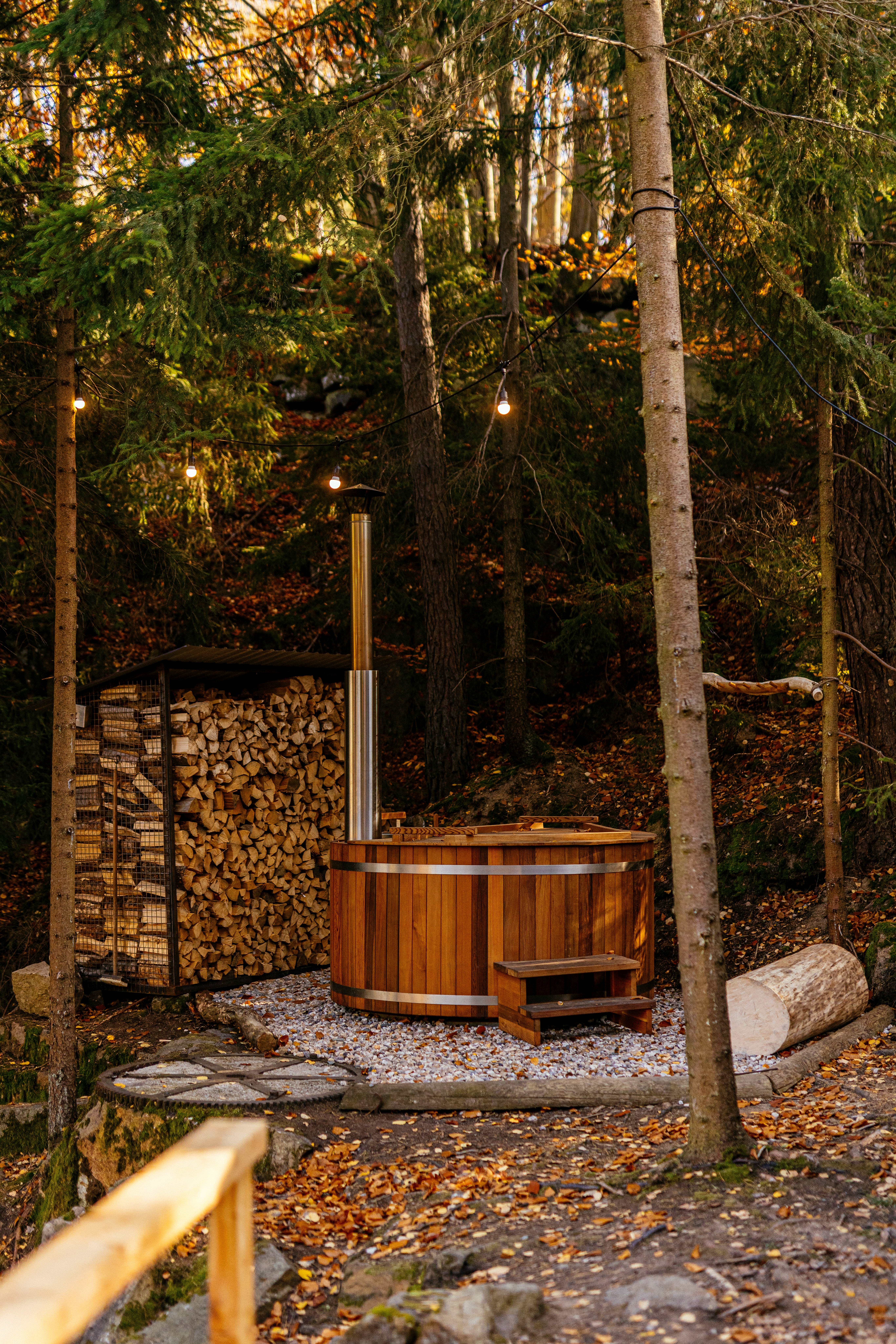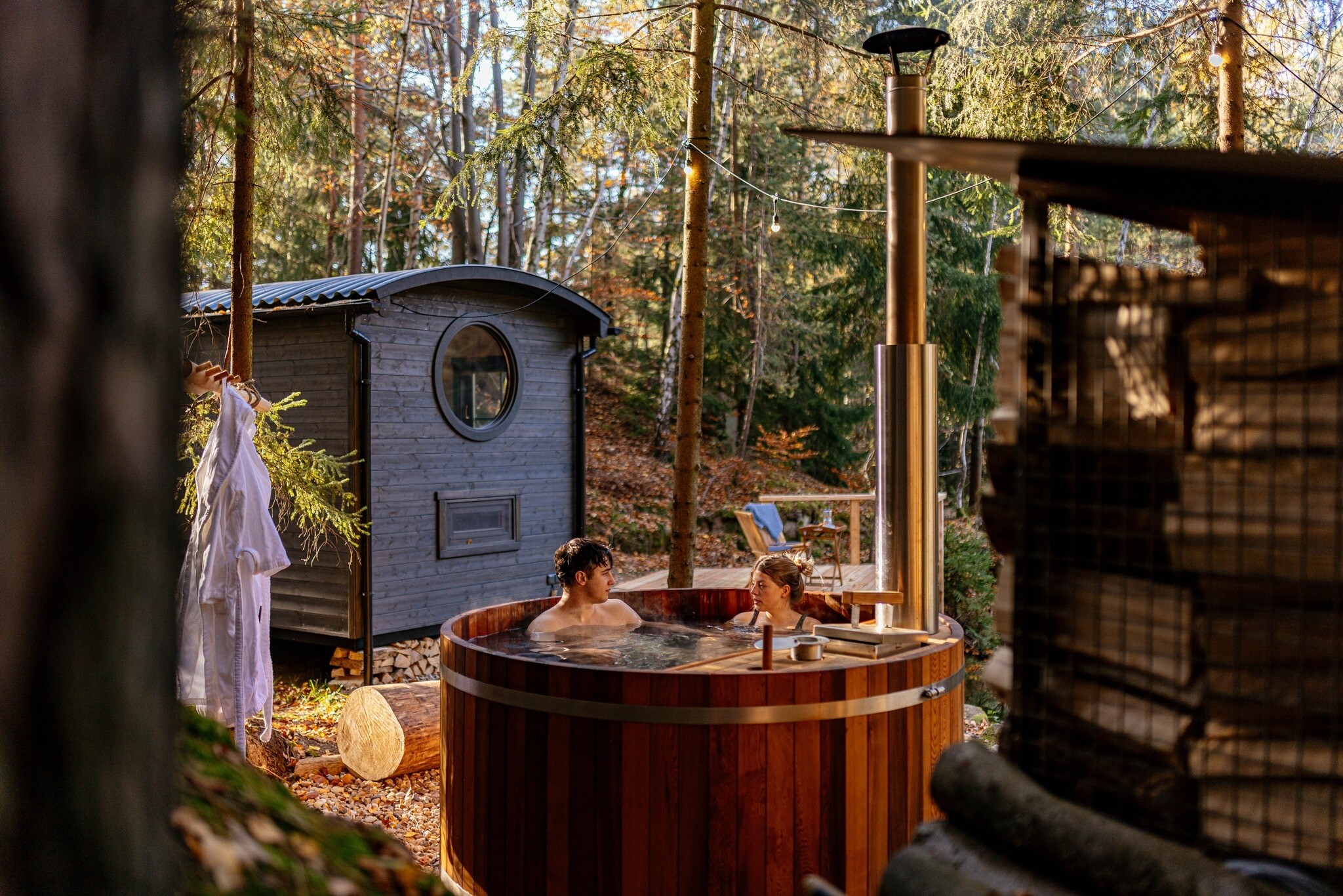Místo, kde vás uhrane ptačí zpěv a noční obloha plná hvězd. Spočinutí, které v létě ochladí a v zimě zahřeje. Naleznete zde ubytování v cabin s velkou postelí, zařízenou kuchyňkou a sociálním zázemím, vyhlídkovou terasu nad lomem s grilem, Hot Tub, a především unikátní plovoucí saunu.