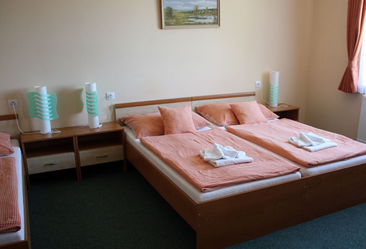 12 dvoulůžkových a 8 třílůžkových pokojů s vlastním sociálním zařízením (cena ubytování bez snídaně) a vás čeká. Vedle hotelu stojí letní restaurace, můžete využít kurt s umělou trávou nebo si zahrát kuželky. Vaši nejmenší jistě ocení dětský koutek.