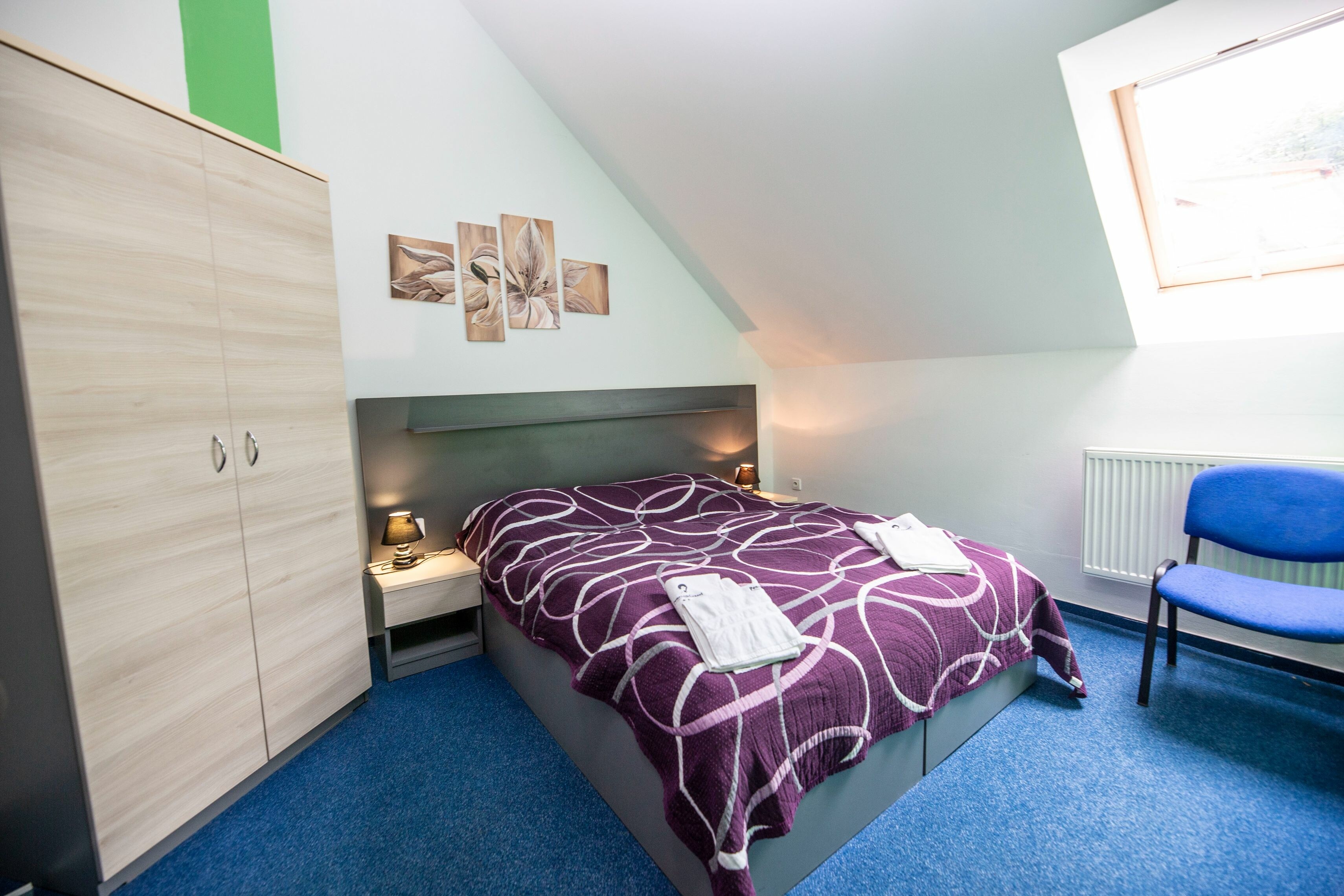 Moderní a vkusně zařízené pokoje jsou umístěny v podkrovní části penzionu. Každý pokoj je vybaven sociálním zařízením, televizorem, chladničkou a trezorem. K dispozici je také vysoušeč vlasů, ručníky a župany.
