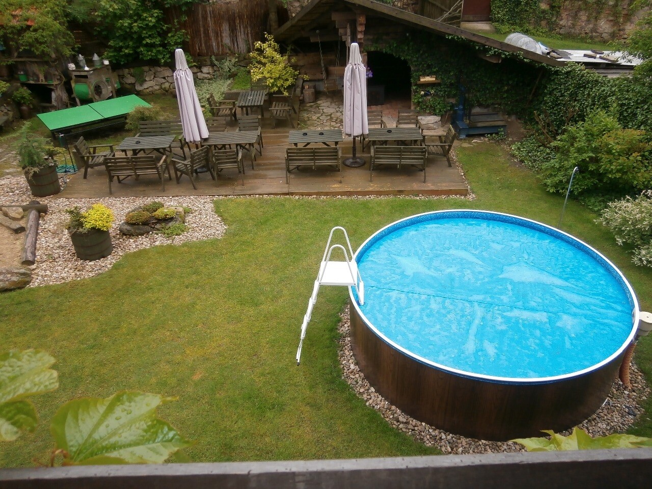 Penzion leží v klidné a romantické oblasti malé obce. Je to uzavřený objekt s velkou zahradou. Na zahradě je k dispozici bazén se solárním ohřevem, trampolína, pískoviště pro děti a houpačky, stolní tenis. Zahradní posezení je vybaveno stoly a židlemi pro 25 osob a 3 grily (gril na dřevěné uhlí a 2 grily s lávovým kamenem).