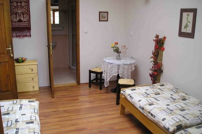Penzion má apartmán - dvě samostatné dvoulůžkové ložnice, obývací pokoj s televizí a s rozkládacím gaučem pro 2 osoby, vlastní koupelna s toaletou a sprchovým koutem. Vlastní vybavená kuchyně.