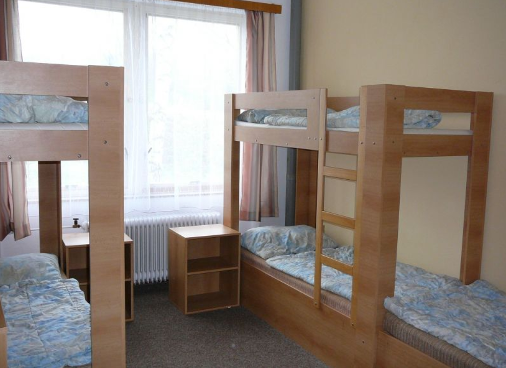 Ubytování v budově ve 2-6 lůžkových pokojích nebo ve 4 lůžkových chatkách. Sociální zařízení na každém patře pro daný počet pokojů a v přízemí budovy sociální zařízení pro chatky.