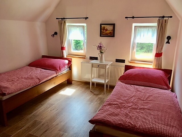 K dispozici 3 koupelny včetně WC, jedno samostatné WC, finská sauna.