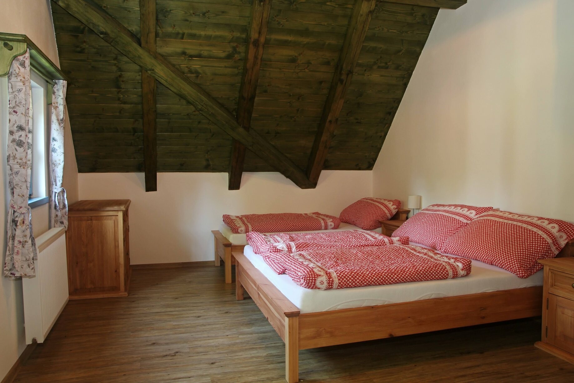 Na chalupě je pro vás připravena krytá pergola s grilem a posezením. Hostům je k dispozici kompletně vybavená chalupa s třemi ložnicemi a možností wellness v podobě sauny. Pro nejmenší je k dispozici dětská postýlka. V kuchyni najdete veškeré nádobí, horkovzdušnou i mikrovlnou troubu a indukční varnou desku.