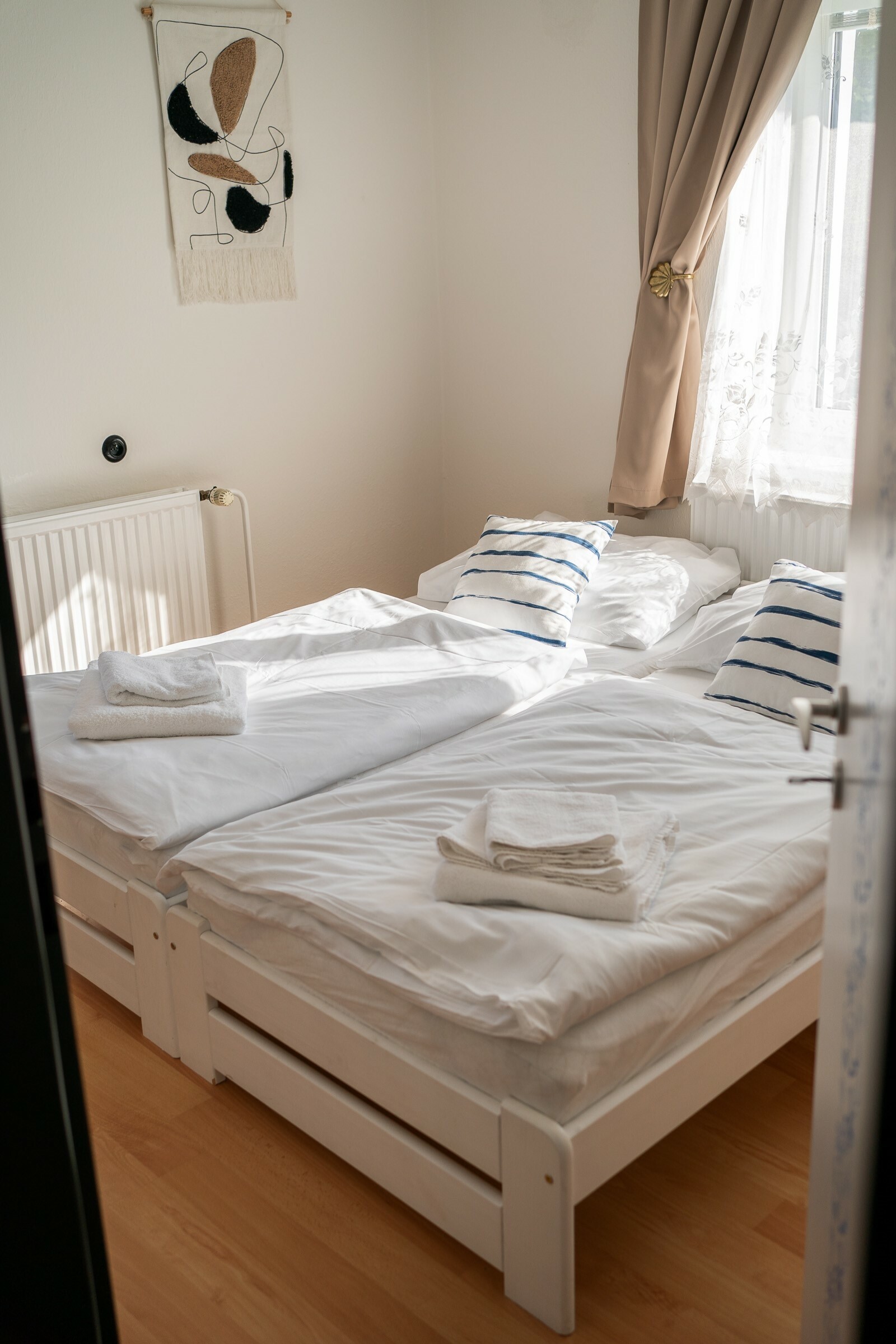Ubytování zahrnuje 3 moderní koupelny a 6 toalet, což zaručuje pohodlí pro všechny hosty. Po dni plném aktivit si můžete ve velké zahradě odpočinout na čerstvém vzduchu.