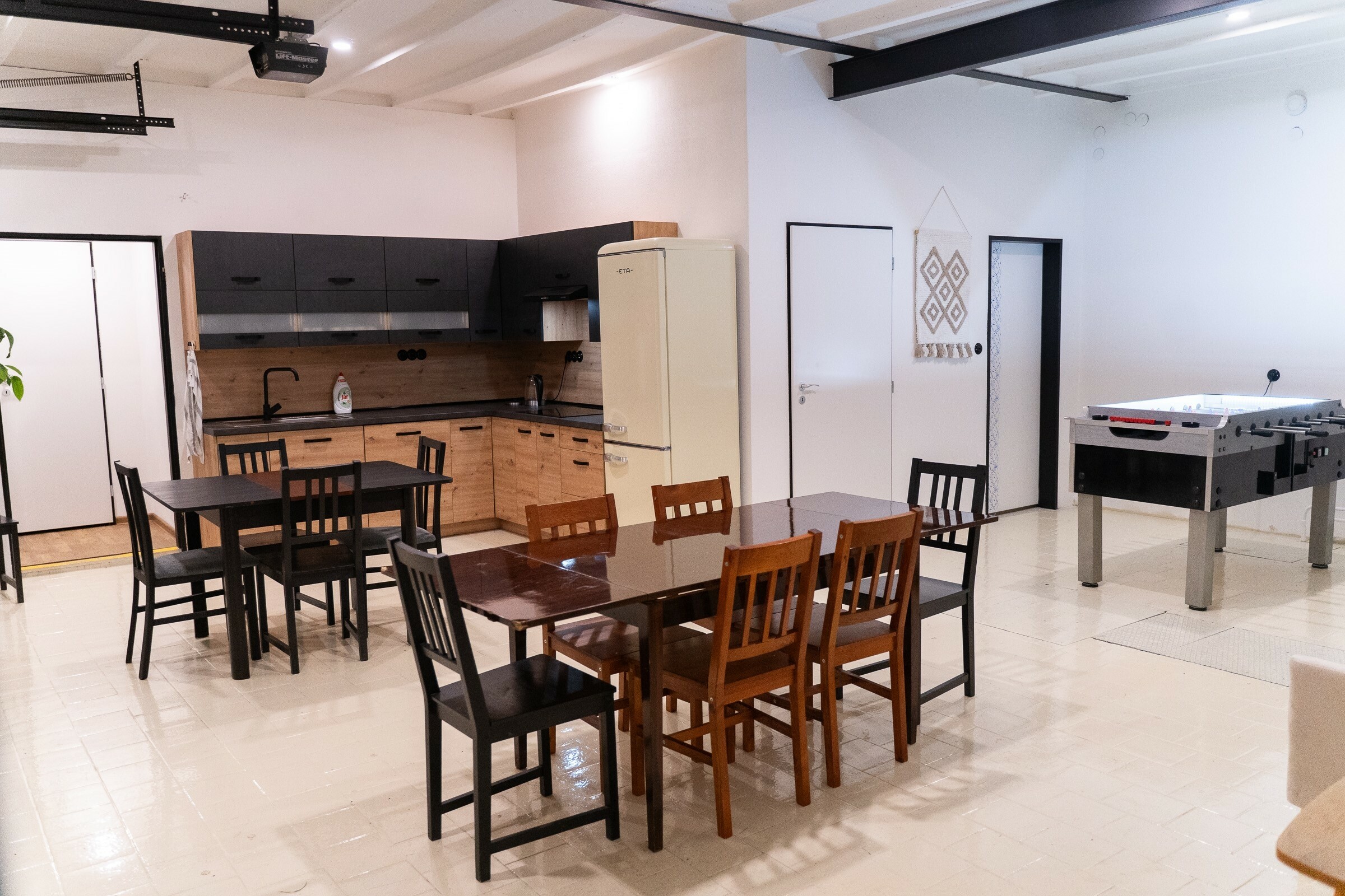 Naše společenská místnost je vybavena profesionálním stolním fotbálkem, což je ideální způsob, jak si užít čas s přáteli nebo rodinou. Dvě plně vybavené kuchyně vám umožní připravovat jídelníčky podle vašeho gusta.