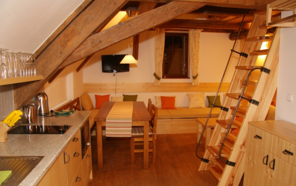 Pokoje mají vlastní koupelny a toalety, LCD televizory se satelitním příjmem. K dispozici je i wi-fi připojení a samozřejmě kuchyňka s varnou deskou, lednicí, mikrovlnou troubou a varnou konvicí. Selská ložnice v mezonetu je přístupná po stylových mlynářských schodech.