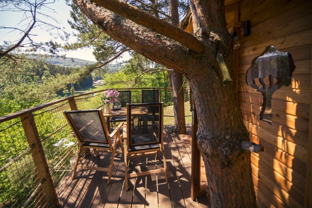Ubytování v korunách tří borovic. Netradiční ubytování v domě na stromě s venkovní kuchyní.