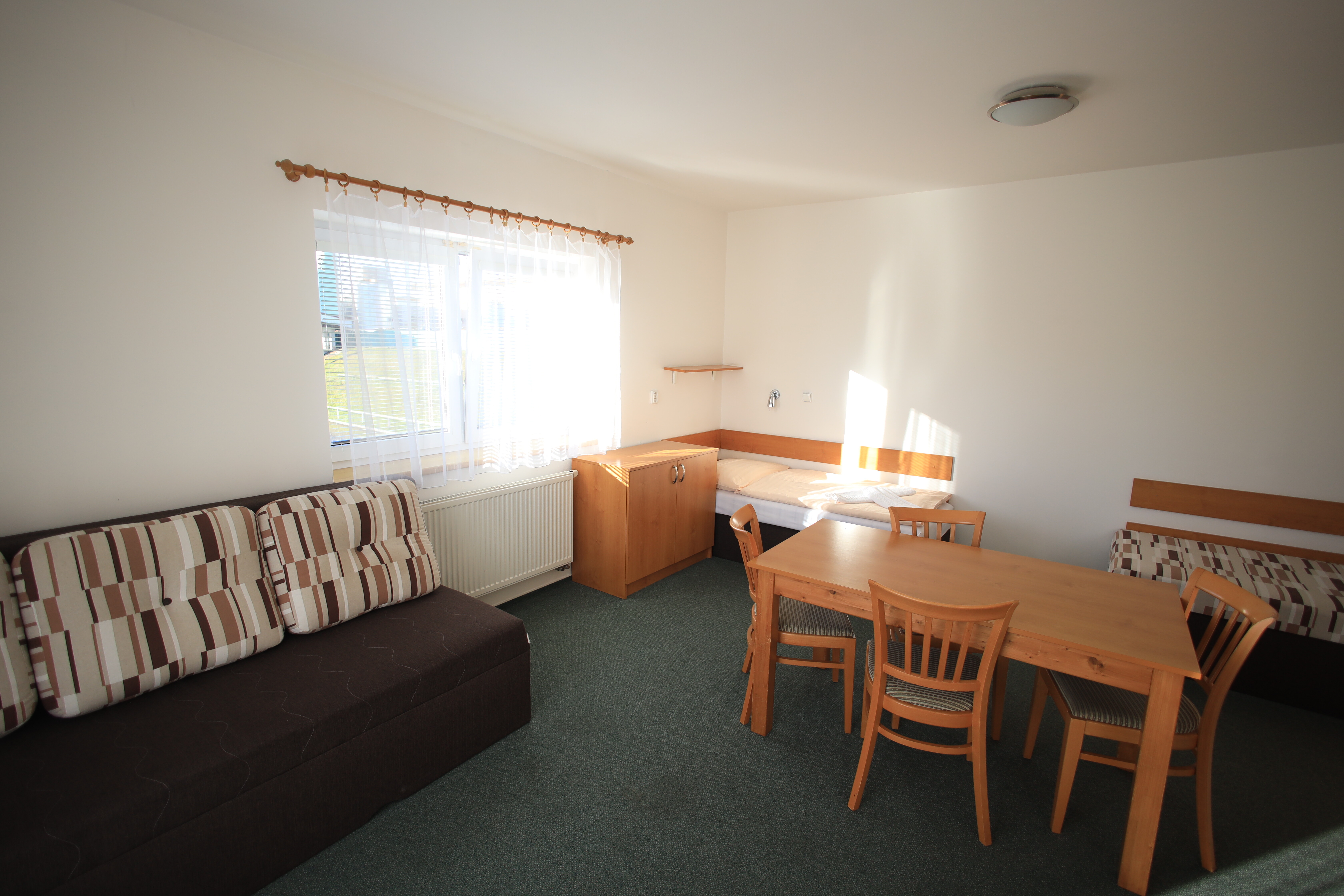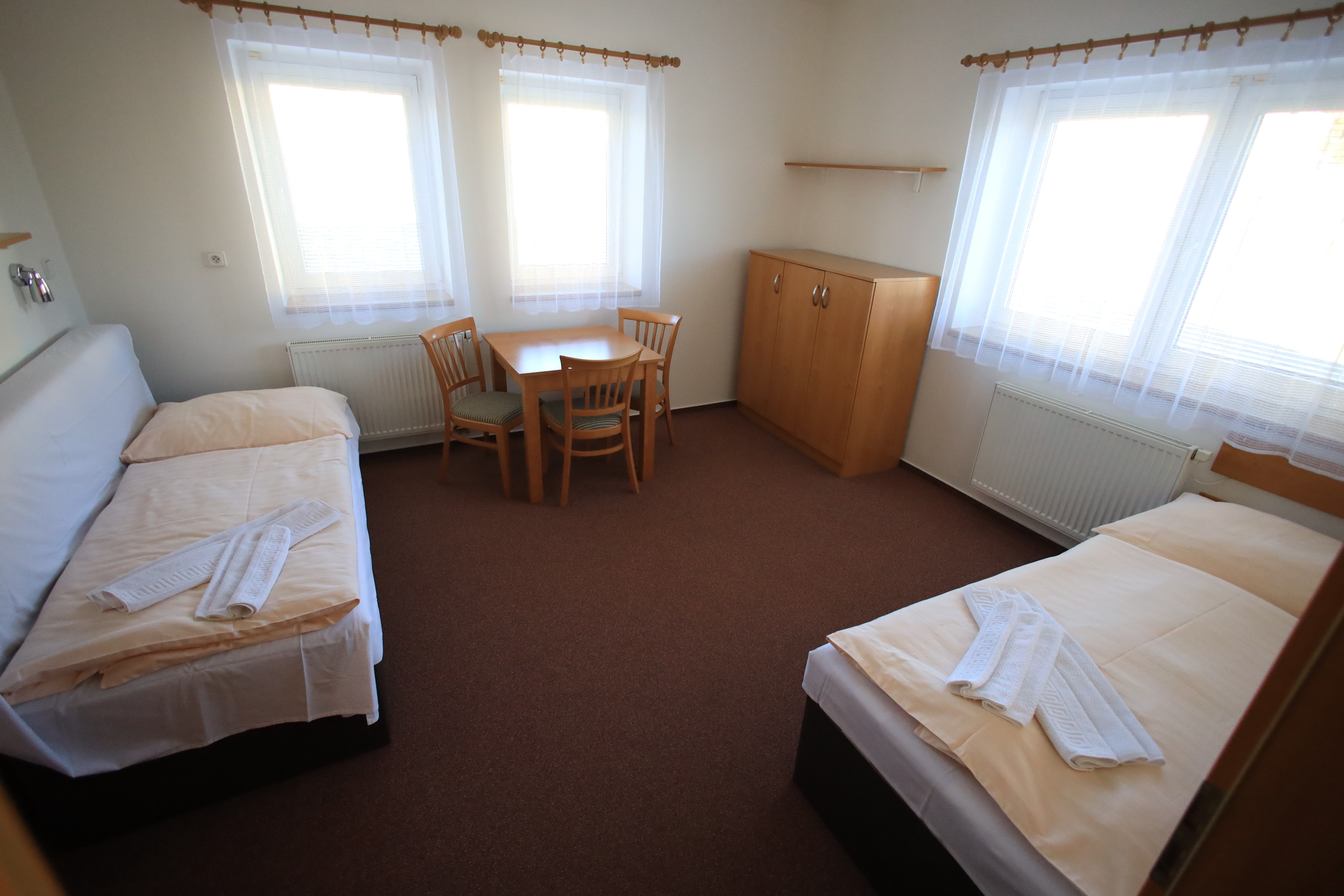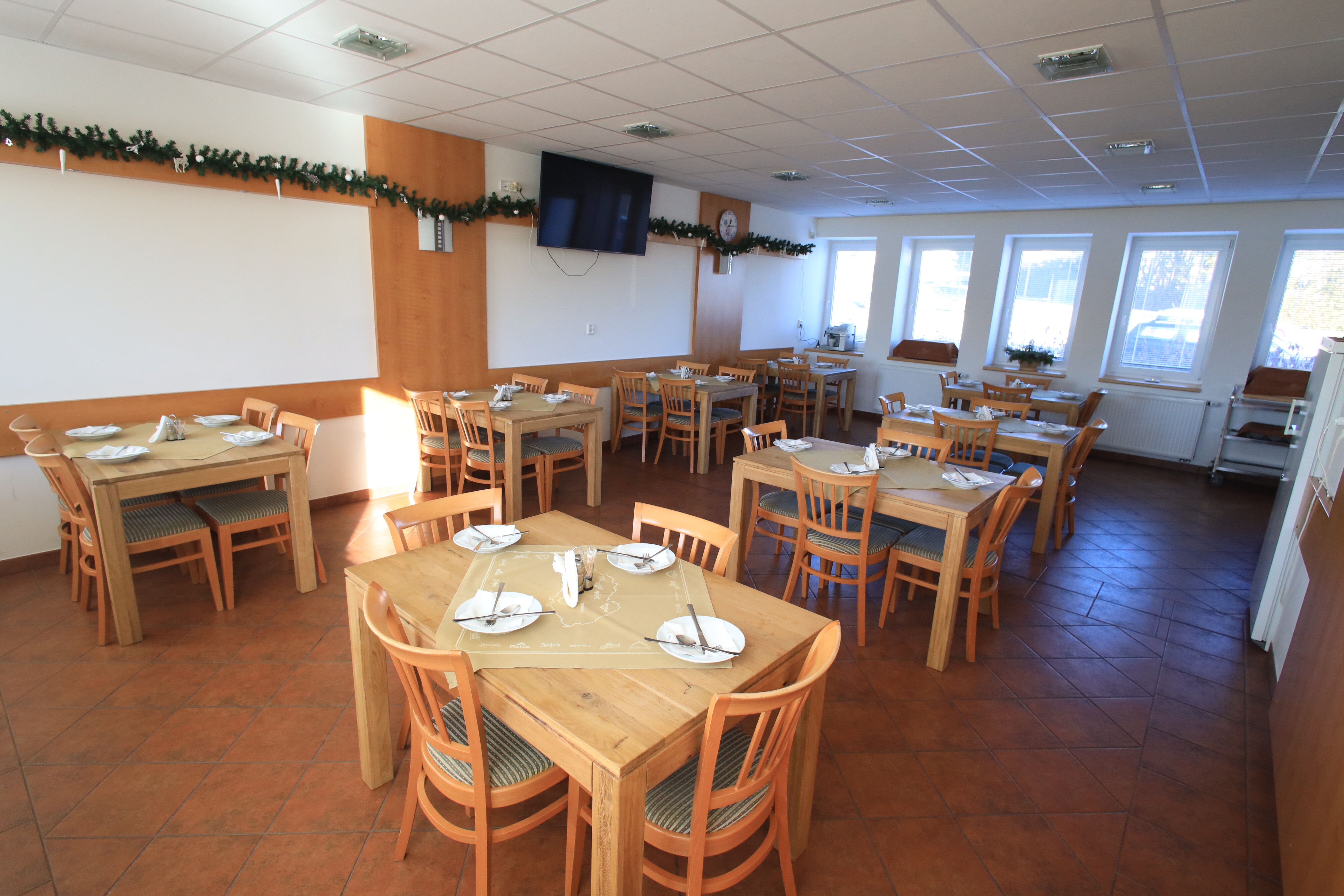 Kromě ubytování poskytujeme také celodenní stravování v naší prostorné jídelně s velkou TV. Pro hosty je k dispozici malá kuchyňka se základním vybavením a nekuřácká hospůdka s venkovní zahrádkou a dětským koutkem. Pokud si s sebou přivezete jízdní kolo nebo jiné sportovní vybavení, máme pro vás uzamykatelné prostory pro jeho úschovu.