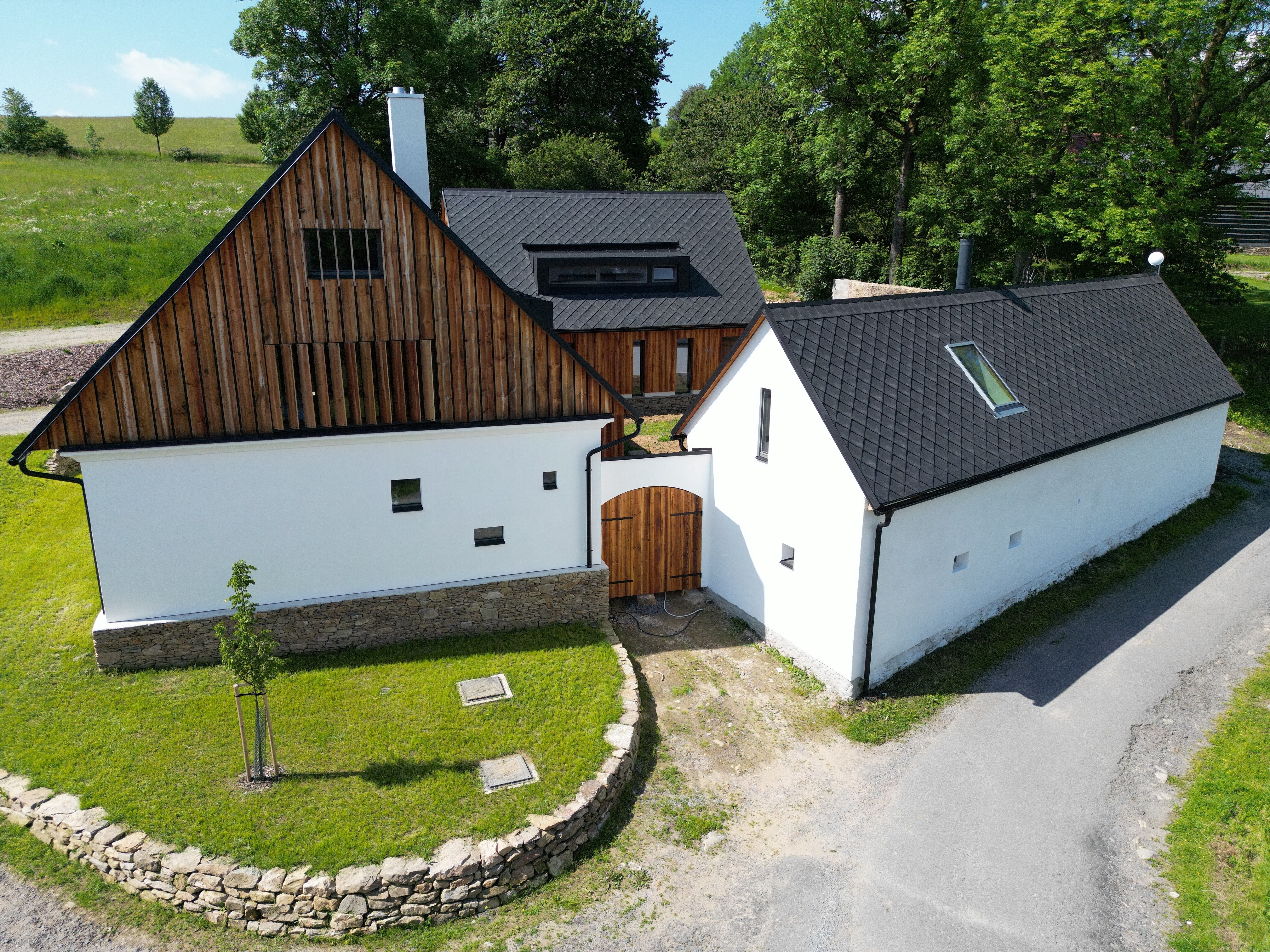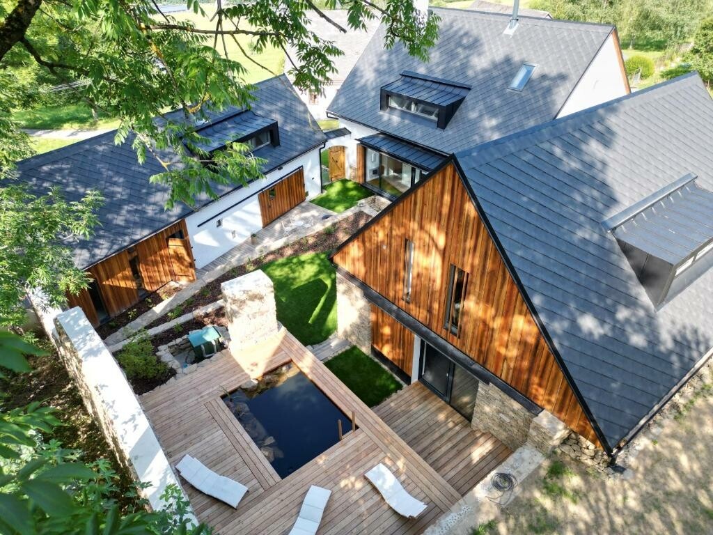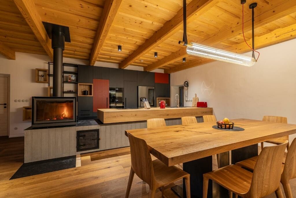 V plně vybavené moderní kuchyni bude nadšený každý domácí kulinář. Útulný obývací pokoj vyzývá ke společnému stolování, lenošení i zábavě. V sychravém počasí pohodu dokreslí praskající oheň v krbu, naopak v létě využijete prostorný dvůr ke grilování nebo posezení s kávou.