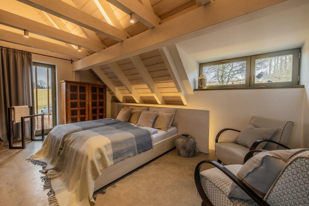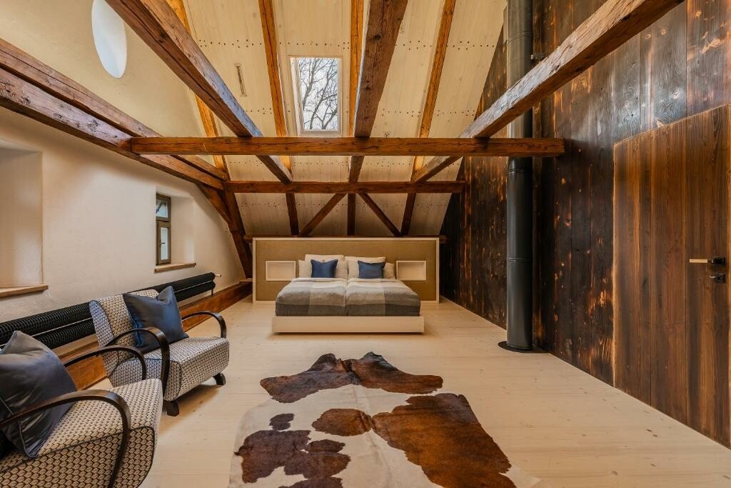 Celá usedlost je připravena jen pro vás. Pohodlím vás budou hýčkat čtyři originální dvoulůžkové ložnice, ve kterých se budete cítit jako doma. Nejtěžší bude si vybrat tu pravou. Postýlku pro děti rádi na vyžádání připravíme. Soukromí poskytnou tři krásné koupelny, kde obzvlášť oceníte podlahové vytápění, které vám zpříjemní pobyt v celém objektu.