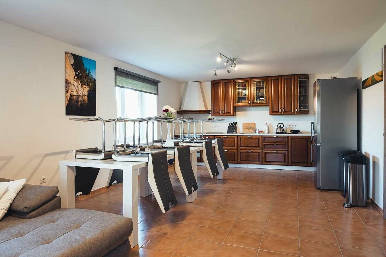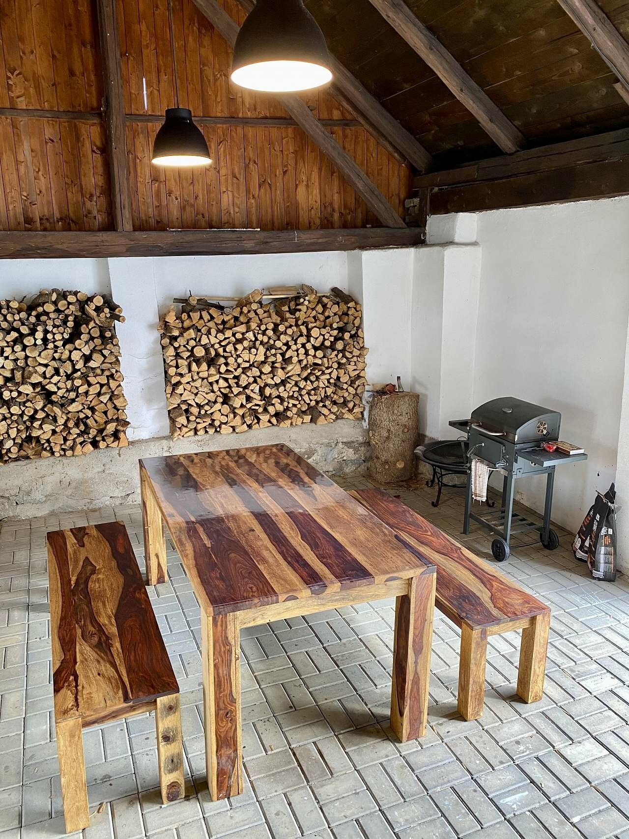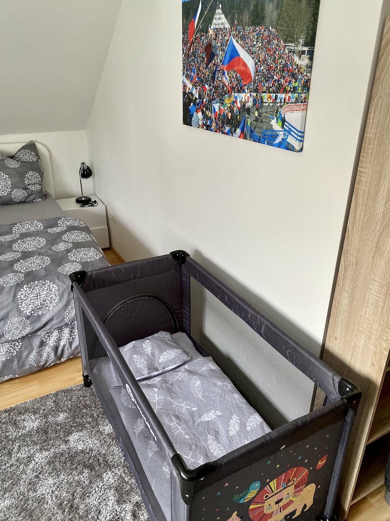K chalupě náleží oplocená zahrada, kryté posezení s grilem a dvorek vhodný pro parkování aut. Uvnitř se nachází 5 nadstandartně vybavených pokojů, 2 koupelny, plně vybavená kuchyňská linka (myčka, kávovar, ... ), místnost pro bezpečné uchovávání lyží/kol. Celková ubytovací kapacita je 12 osob. Samozřejmostí je rychlá Wi - Fi v celém objektu, dále TV s Netflix, O2TV, Xbox One, bezdrátový reproduktor, pračka.