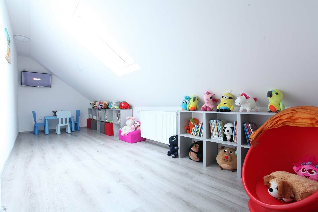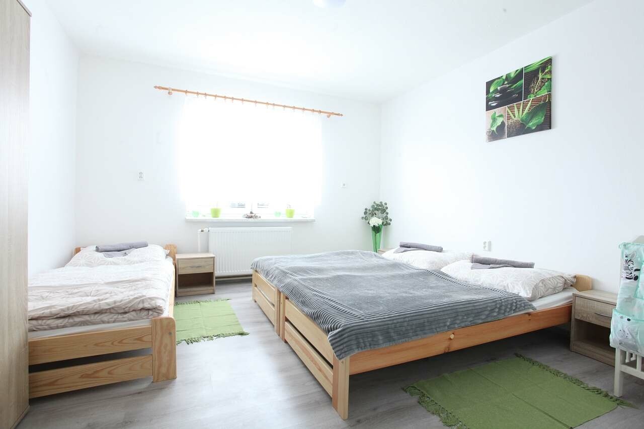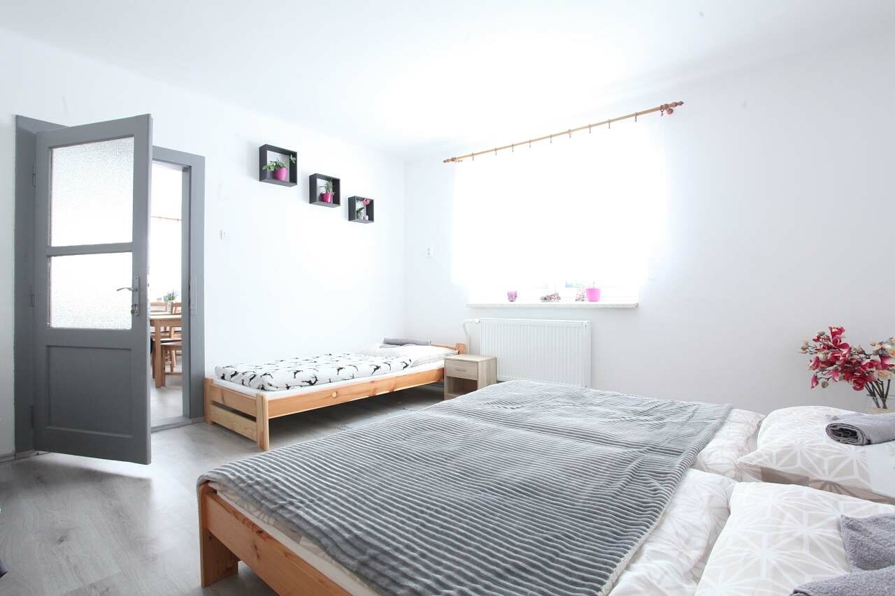 Dům je rozdělen do pěti samostatných neprůchozích a uzamykatelných ložnic. Pro vaše děti je připravená prostorná herna plná hraček. Naleznete zde plně vybavenou kuchyň (rychlovarná konvice, kávovar, mikrovlnná trouba, lednice s mrazákem, sporák a veškeré kuchyňské nádobí pro vaše pohodlné vaření), v kuchyni je zároveň posezení a TV.