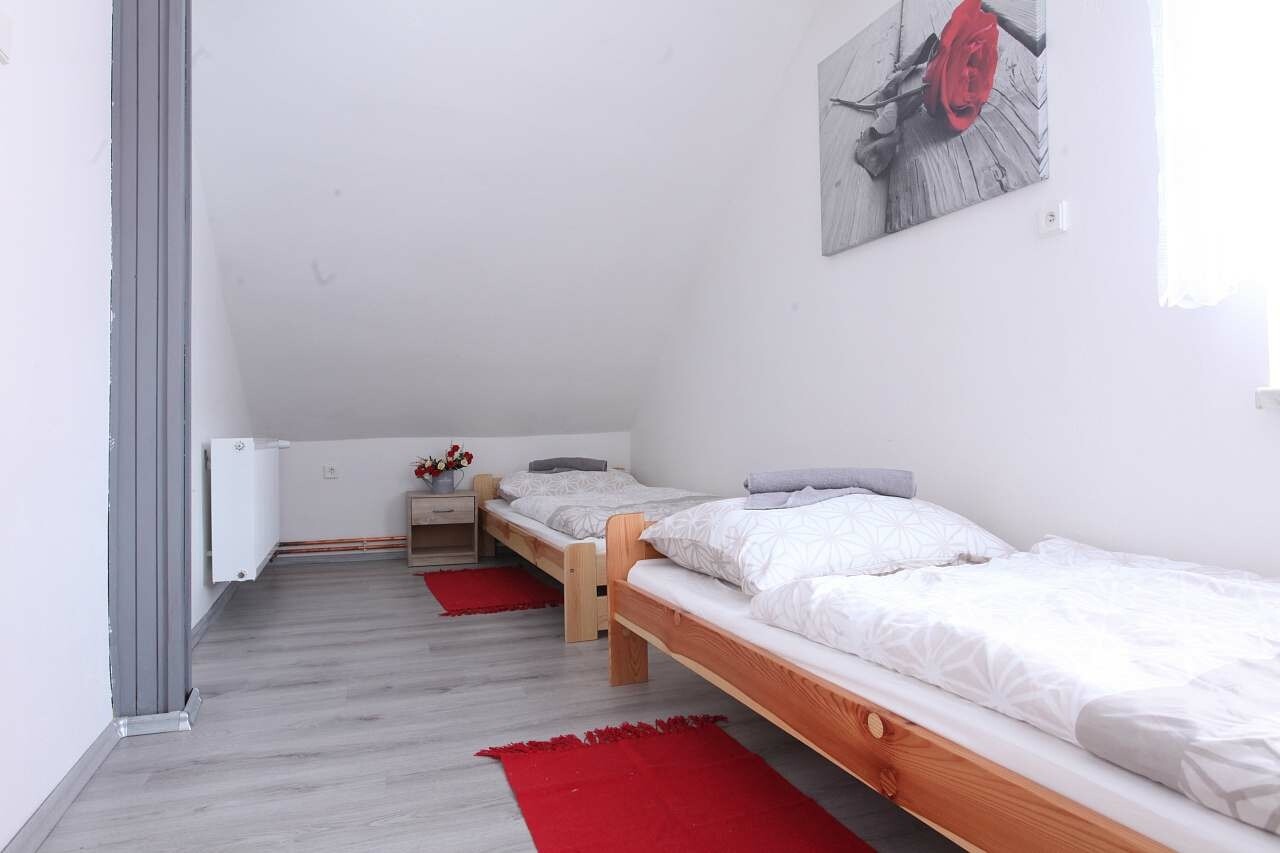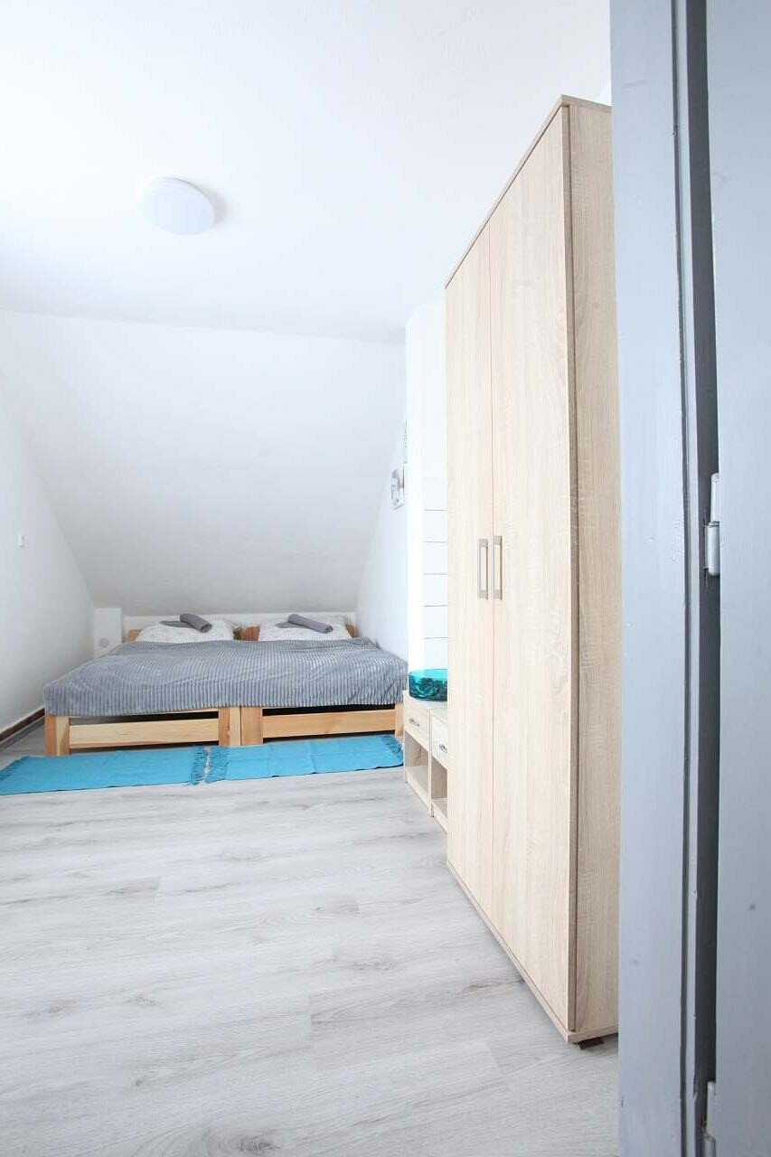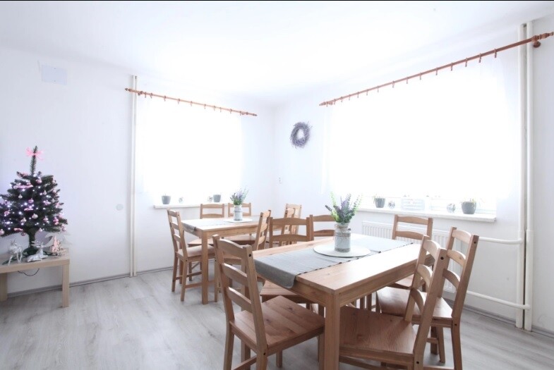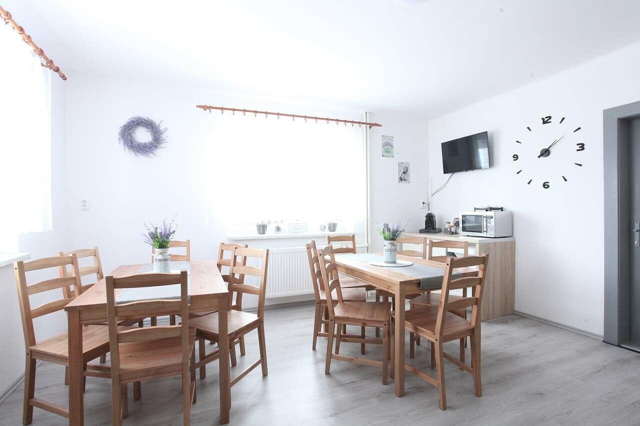 Dům je rozdělen do pěti samostatných neprůchozích a uzamykatelných ložnic. Pro vaše děti je připravená prostorná herna plná hraček. Naleznete zde plně vybavenou kuchyň (rychlovarná konvice, kávovar, mikrovlnná trouba, lednice s mrazákem, sporák a veškeré kuchyňské nádobí pro vaše pohodlné vaření), v kuchyni je zároveň posezení a TV.