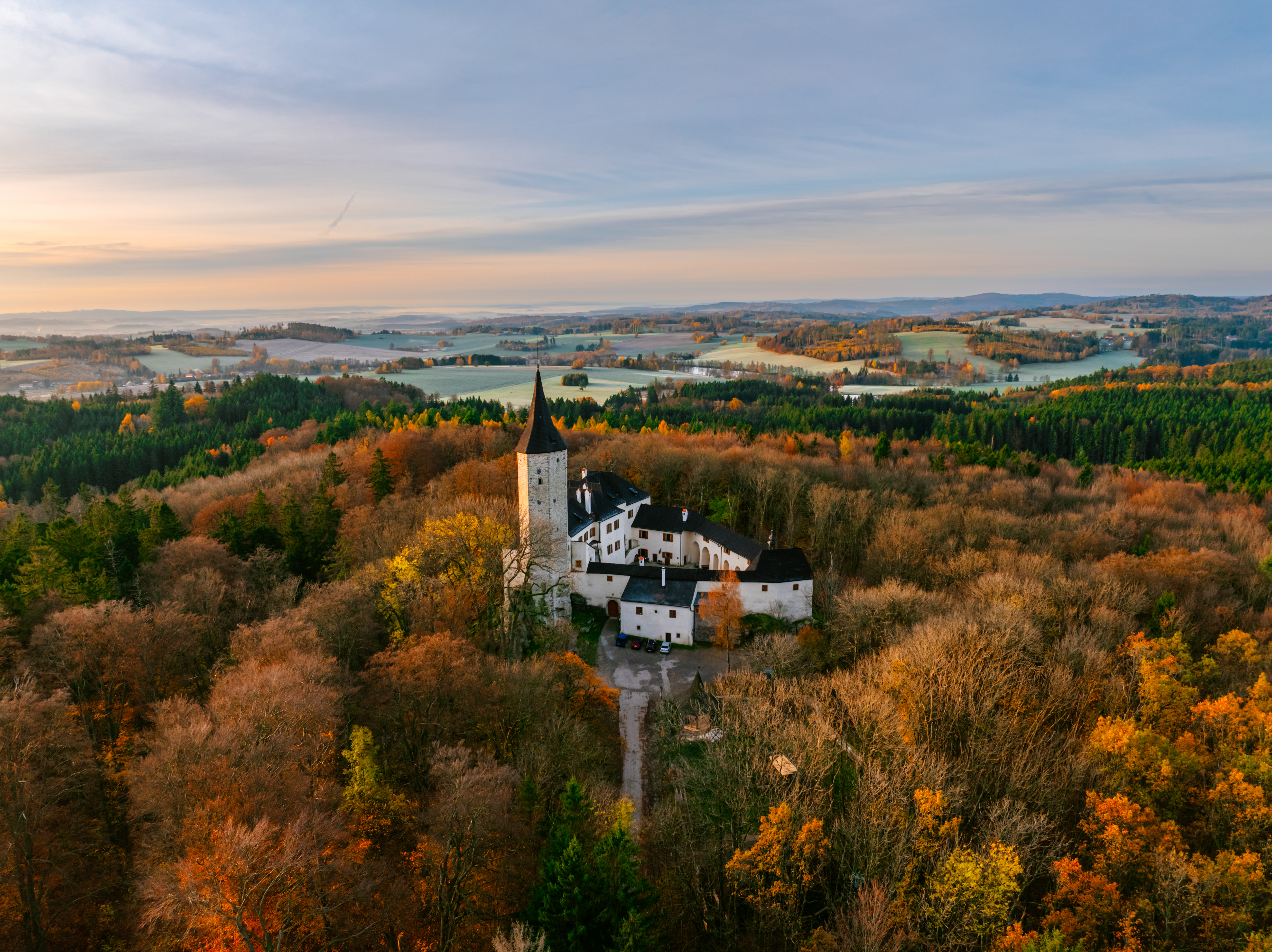 Hustý les plný zvěře, z něj ční kamenný hrad s vysokou věží a uvnitř je obrovské mraveniště. To je Roštejn. Víte, odkud prchal princ Jaroslav ze svého domácího vězení v pohádce Jak se budí princezny?