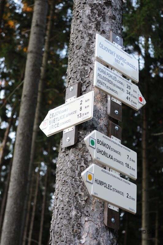 Na Humpolecku vede skoro dvacetikilometrová trasa, která se spojuje se žlutou spojkou a dále také se zelenou i červenou na Čejovském kopci.