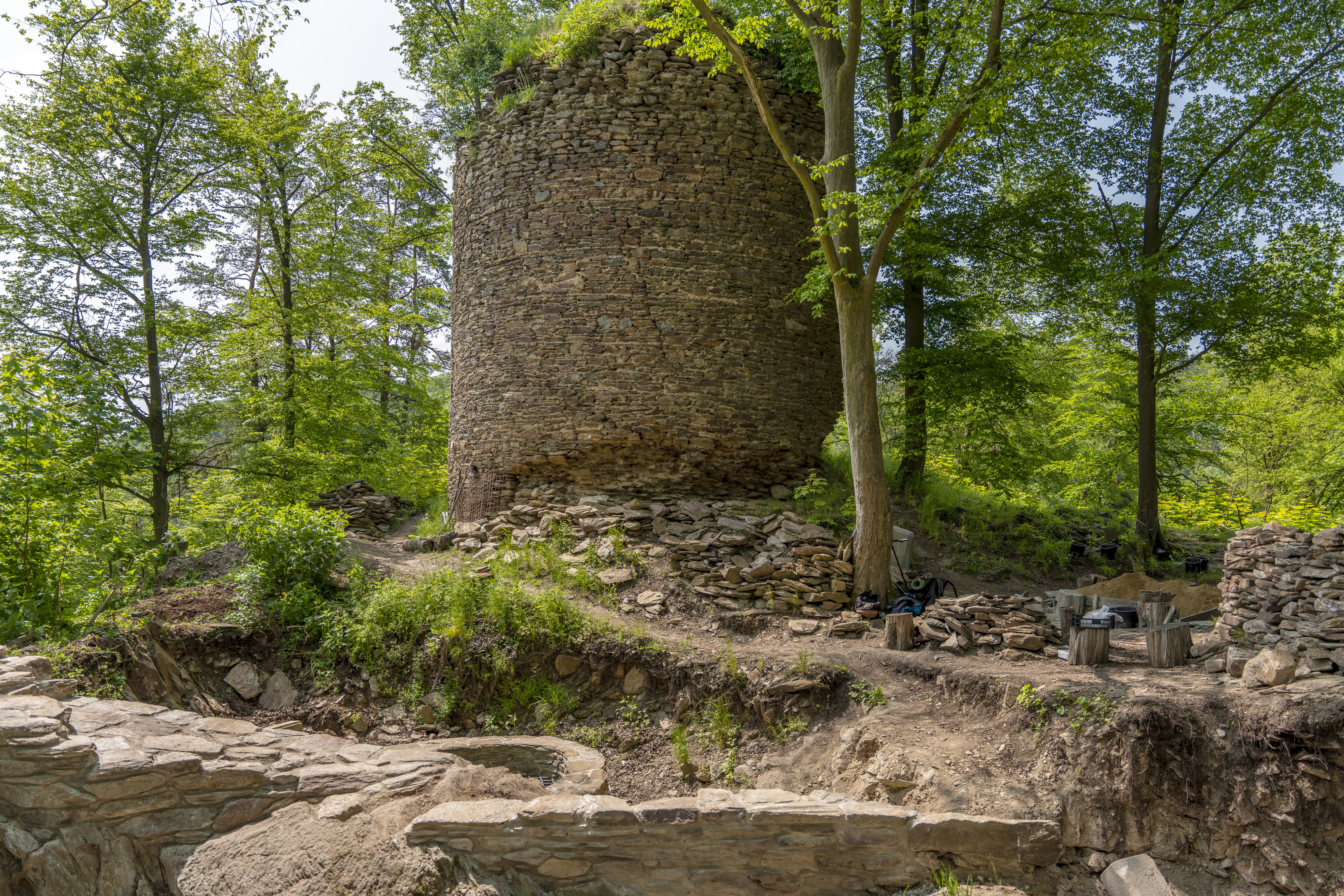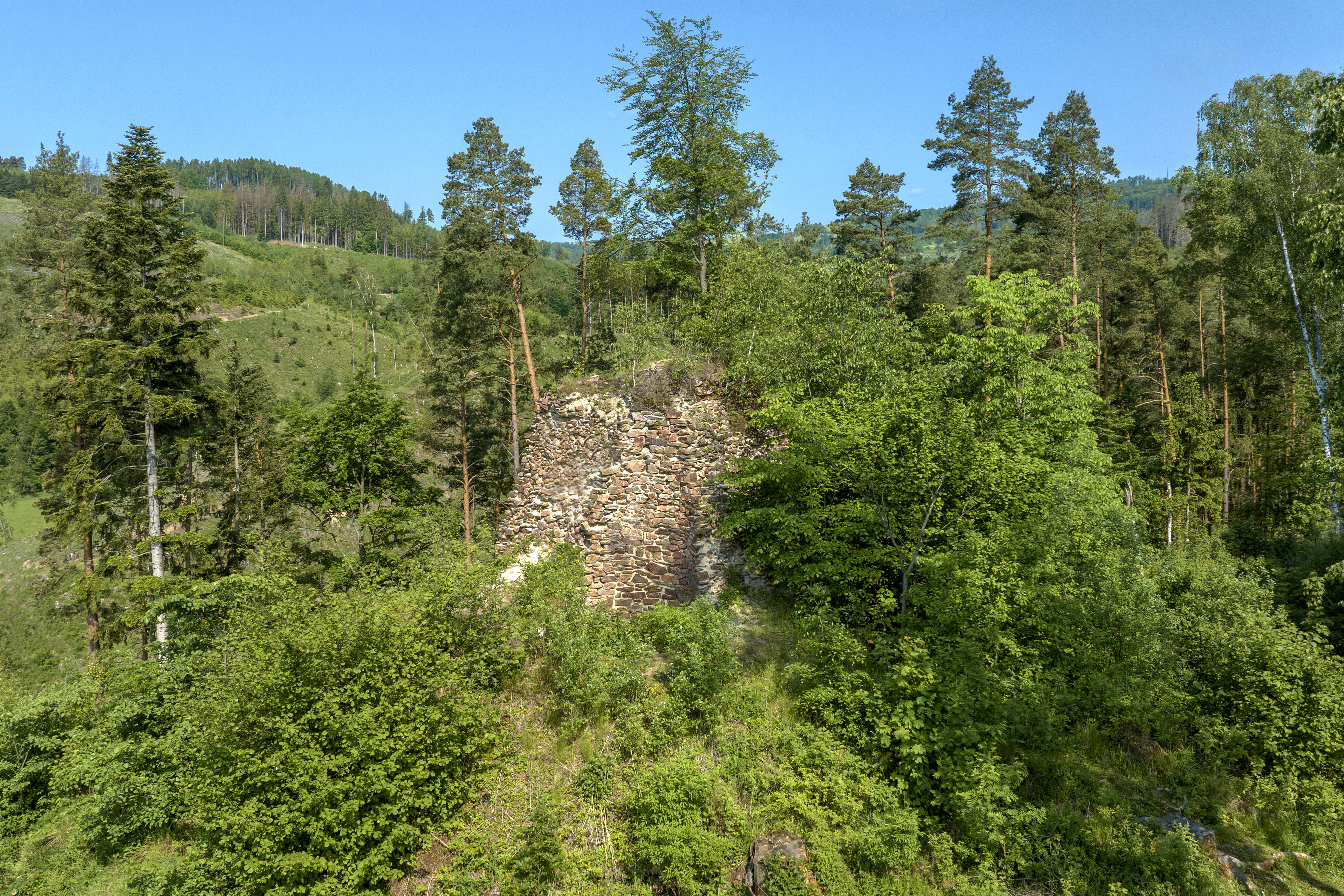 Žlutá značka vás dále zavede k rozcestí pod Bajerovým kopcem, kde si užijete výhledy do krajiny. Na rozcestí odbočte a po modré turistické značce dojdete k zřícenině hradu Aueršperku pocházejícího ze 13. století. K vidění jsou tu zbytky zdí a věže.