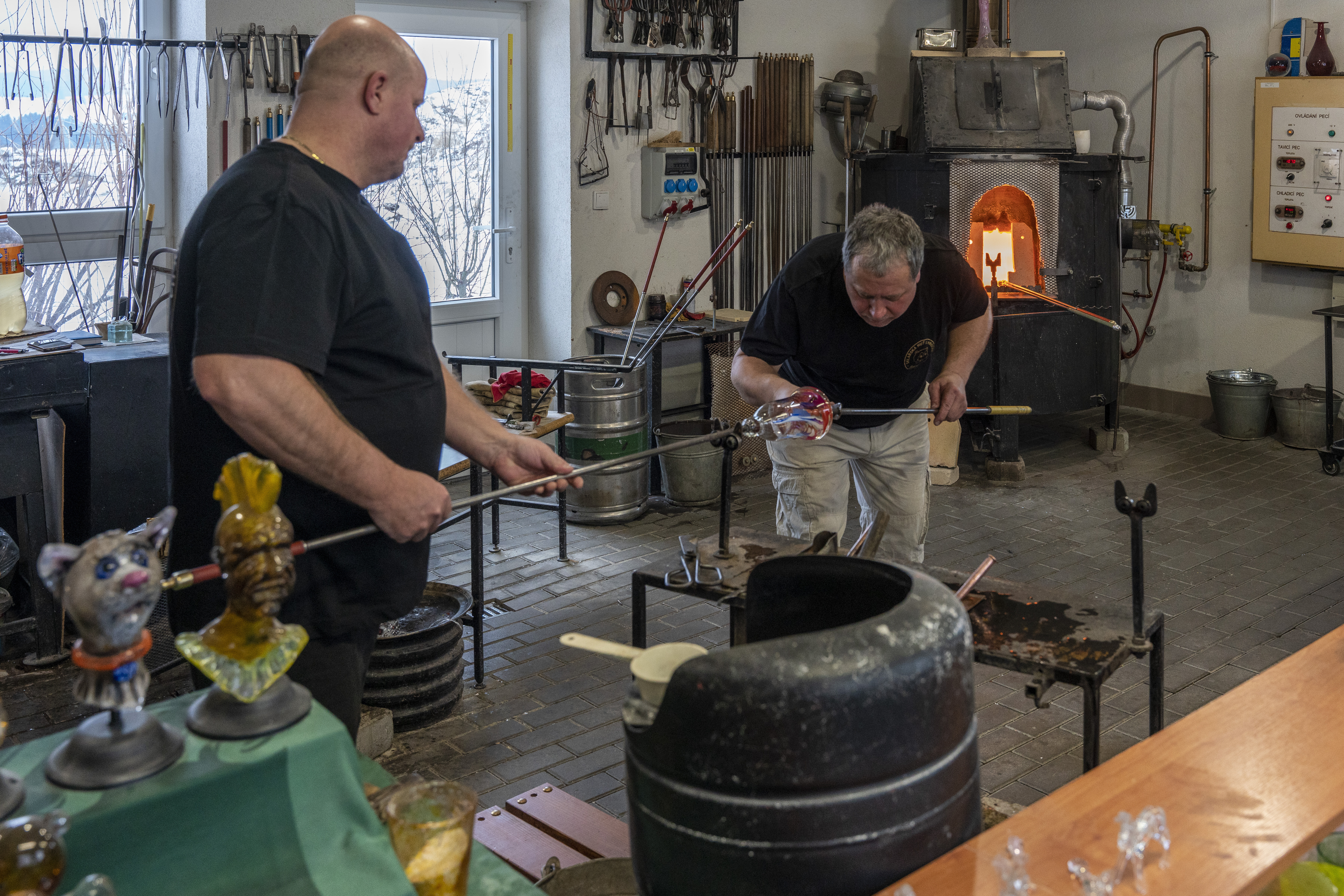 Ze Škrdlovic se pak vydejte do nedaleké obce Karlov. I tady můžete navštívit místní sklárnu. Exkurze se tu obvykle konají v pracovní dny od 9.30 a 10.30. Je-li ve vaší skupině více než 10 osob, ohlaste návštěvu předem. Od pondělí do soboty je otevřená také umělecká galerie s prodejnou. Otevírací hodiny si však před cestou raději ověřte. Někdy mívá sklárna zavřeno z důvodu pravidelné údržby pece.